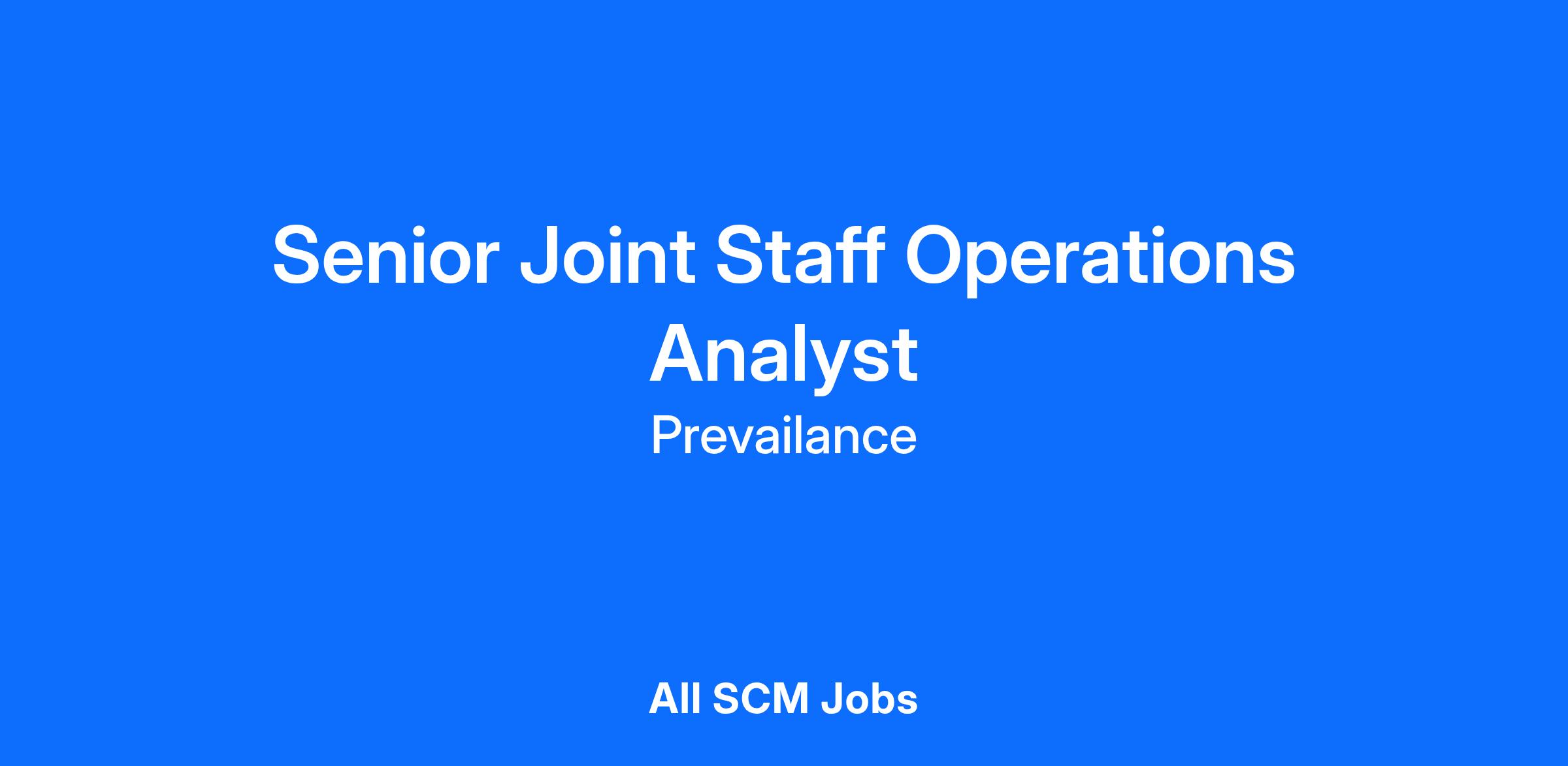 Prevailance is seeking an experienced, mission-focused professional to serve as a Senior Operations Analyst in support of the CJCS J6 Directorate for Cyber and Command, Control, Communications, and Computers Integration (DDC5I).