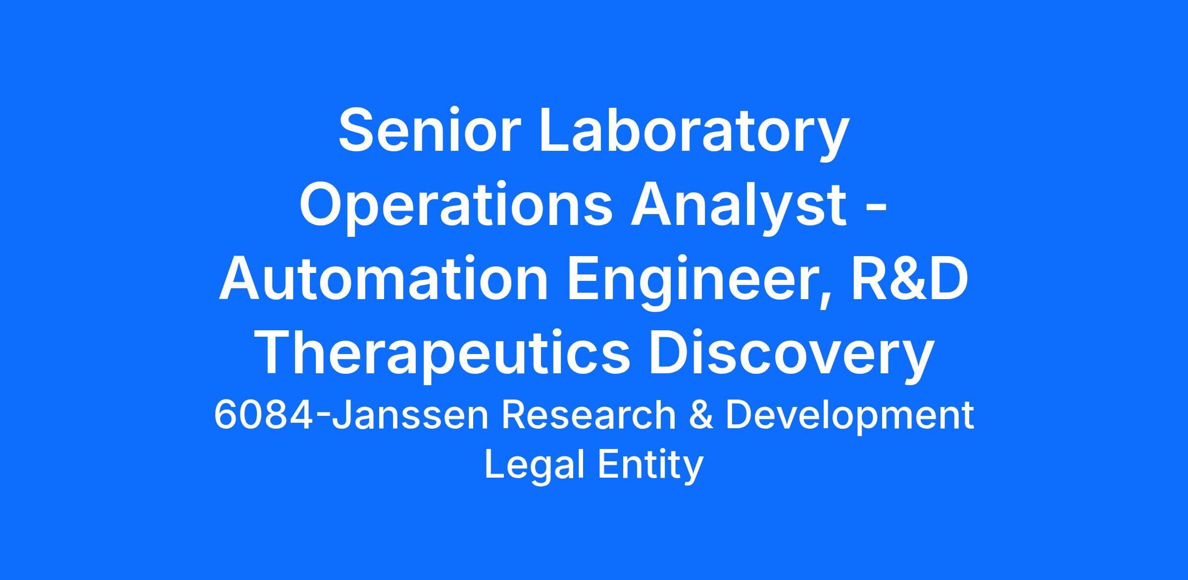 We are searching for the best talent for a Senior Laboratory Operations Analyst – Automation Engineer, R&D Therapeutics Discovery to be located in Spring House, PA.