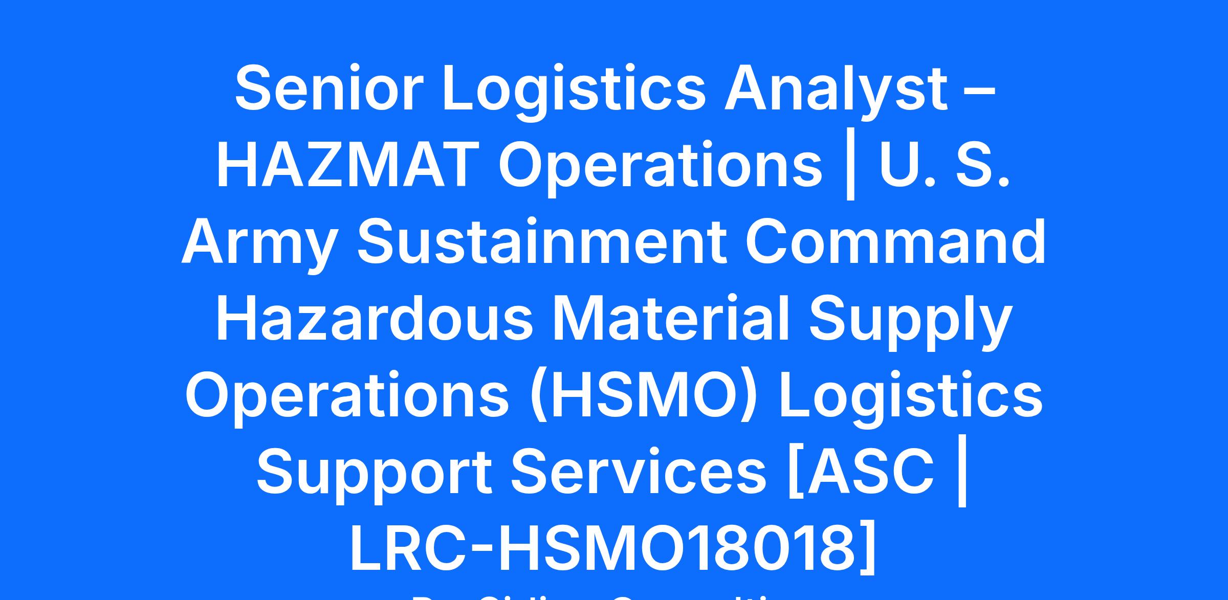 Desired Qualifications For Senior Logistics Analyst – HAZMAT Operations | U. S. Army Sustainment Command Hazardous Material Supply Operations (HSMO) Division Hazardous Material Supply Operations (HSMO) Logistics Support Services [ASC | LRC-HSMO18018] (ASC | LRC-HSMO18018) Candidates: