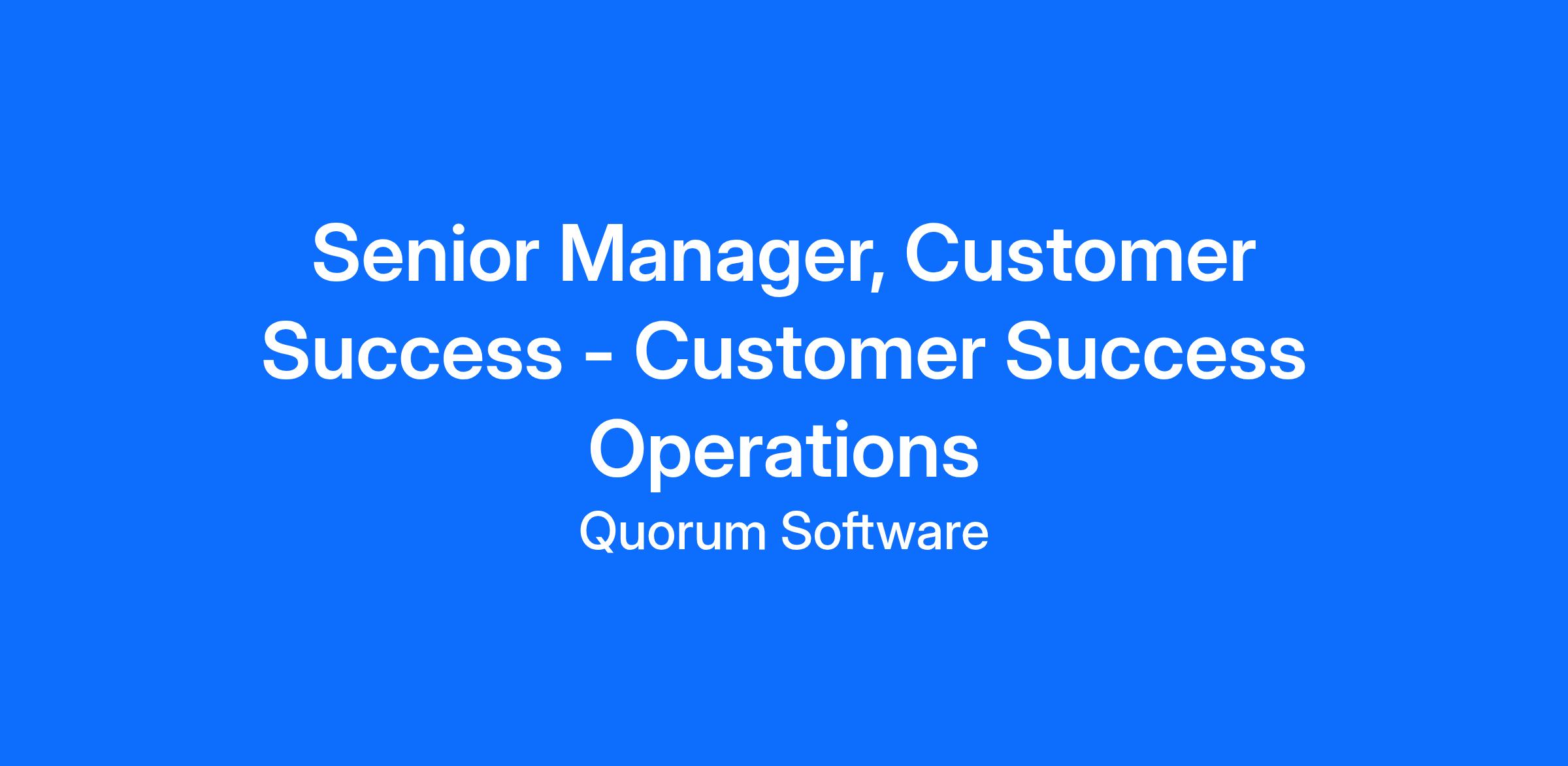 Senior Manager, Customer Success – Customer Success Operations