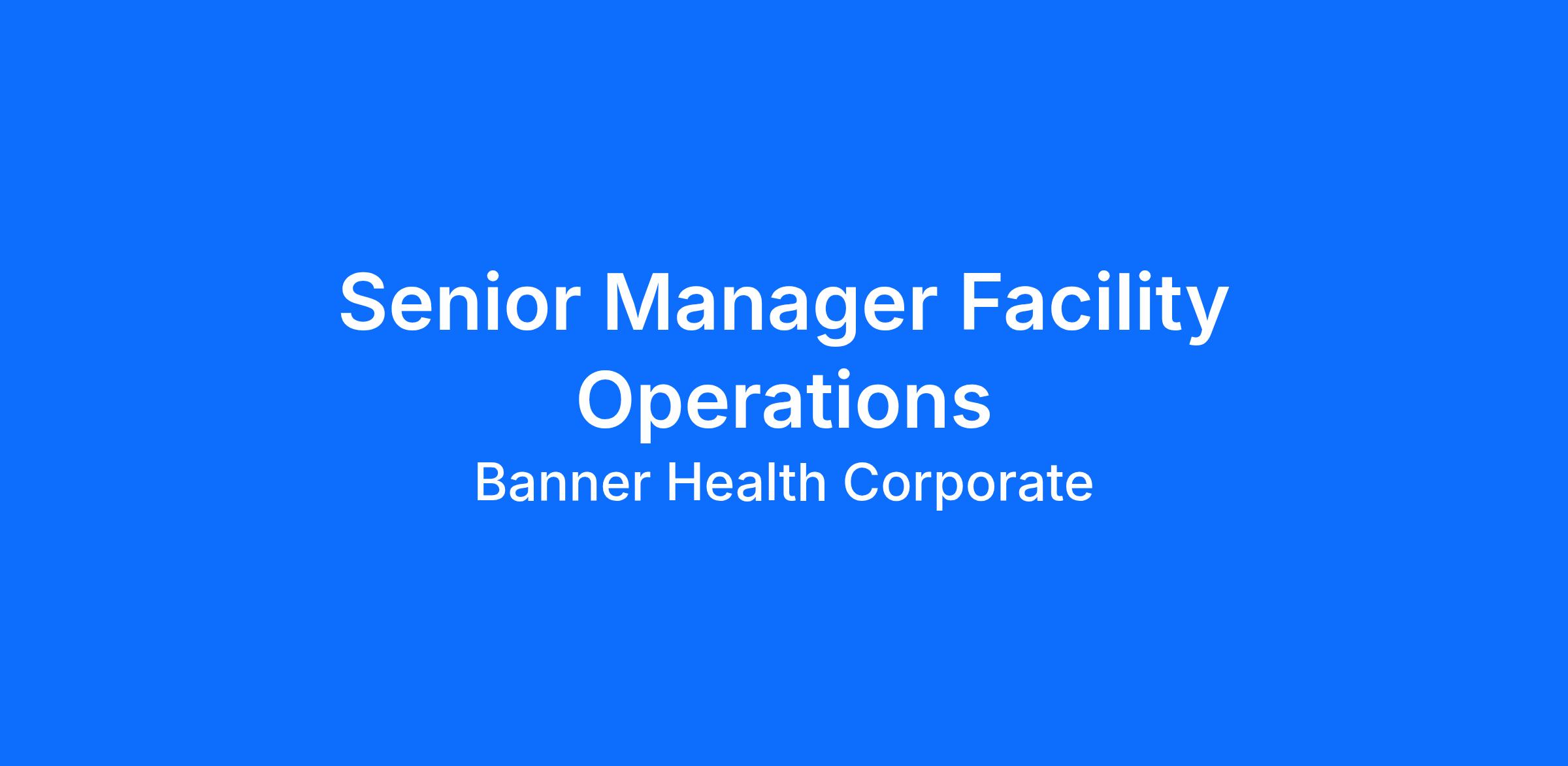 As Senior Manager of Facility Operations, you’ll lead and mentor a high-performing Facilities team with two direct reports overseeing specialized areas. This dynamic, hands-on role gives you the opportunity to strengthen infrastructure reliability, elevate team performance, and make a visible impact across the medical center. You’ll play a key role in maintaining accreditation readiness year-round, ensuring inspections and documentation are always survey-ready. Join a passionate, collaborative team committed to excellence and be the leader who brings it all together at Banner Del Webb Medical Center.