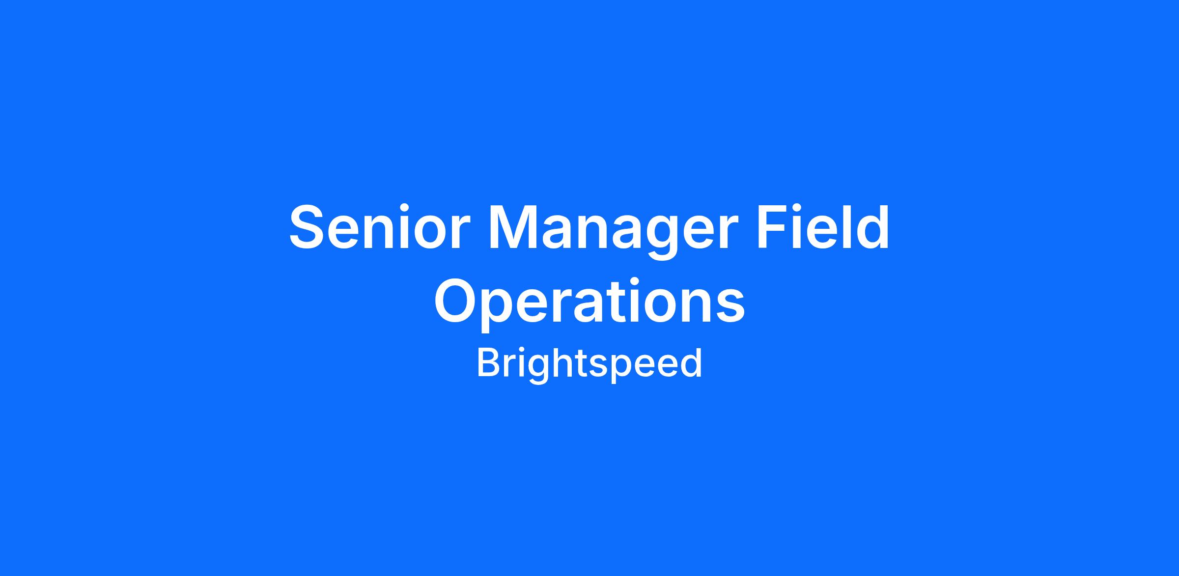 Brightspeed is looking for an experienced Senior Manager Field Operations to join our team! The Senior Manager Field Operations is accountable for leading all installation and repair efforts to residential customers as well as all enterprise business products and services, as well as network maintenance and repair to the core and local network. Role will be the regional POC for large events such as outages, marketing, and local knowledge for engineering project. Strong leadership and collaboration skills are required as this position is responsible for the results from multiple organizations in both direct and indirect reporting structures. This position is also actively involved in community and organizations that help strengthen communities and the Brightspeed brand.