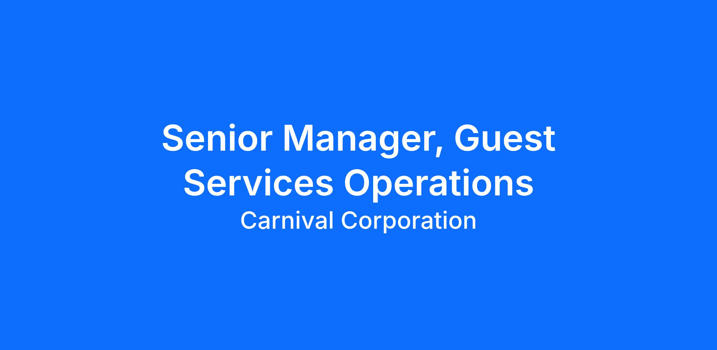 Scope: The Senior Manager, Guest Services Operations oversees all aspects of Guest Services for Holland America Line and Seabourn, ensuring the highest standards of guest satisfaction, operational efficiency, and financial responsibility. This role manages day-to-day operations across both brands, drives strategic initiatives to enhance the guest experience, and ensures seamless coordination between shipboard and shoreside teams. Responsibilities include overseeing service delivery, managing budgets and resources, and implementing innovative solutions to improve productivity and efficiency through technology and process enhancements.