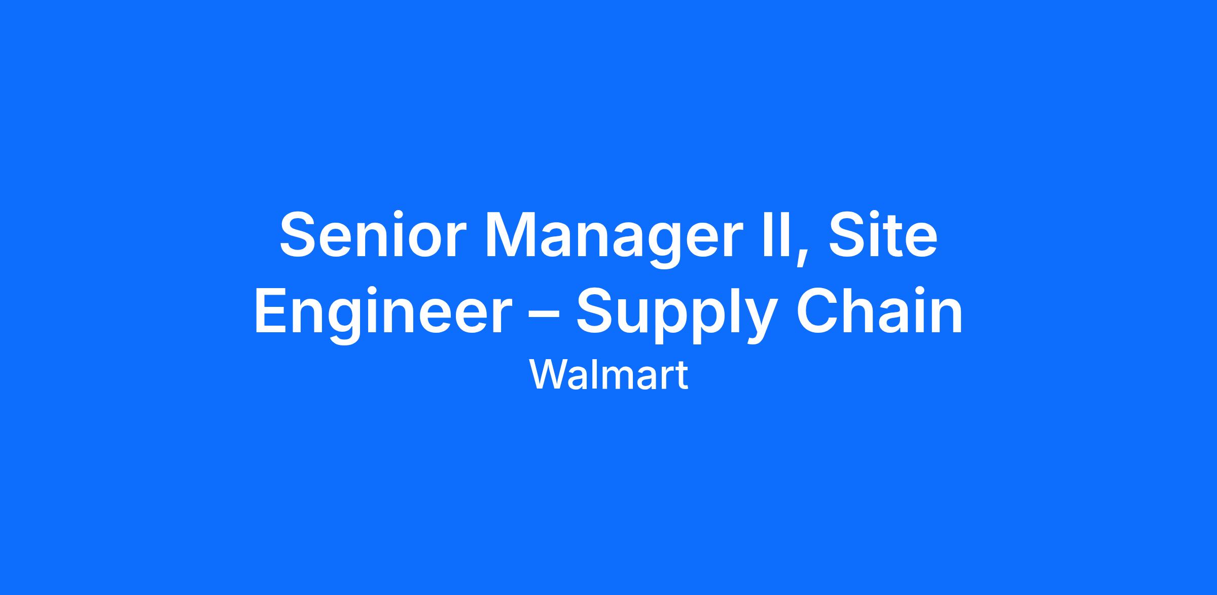 Position: Senior Manager II, Site Engineer – Supply Chain