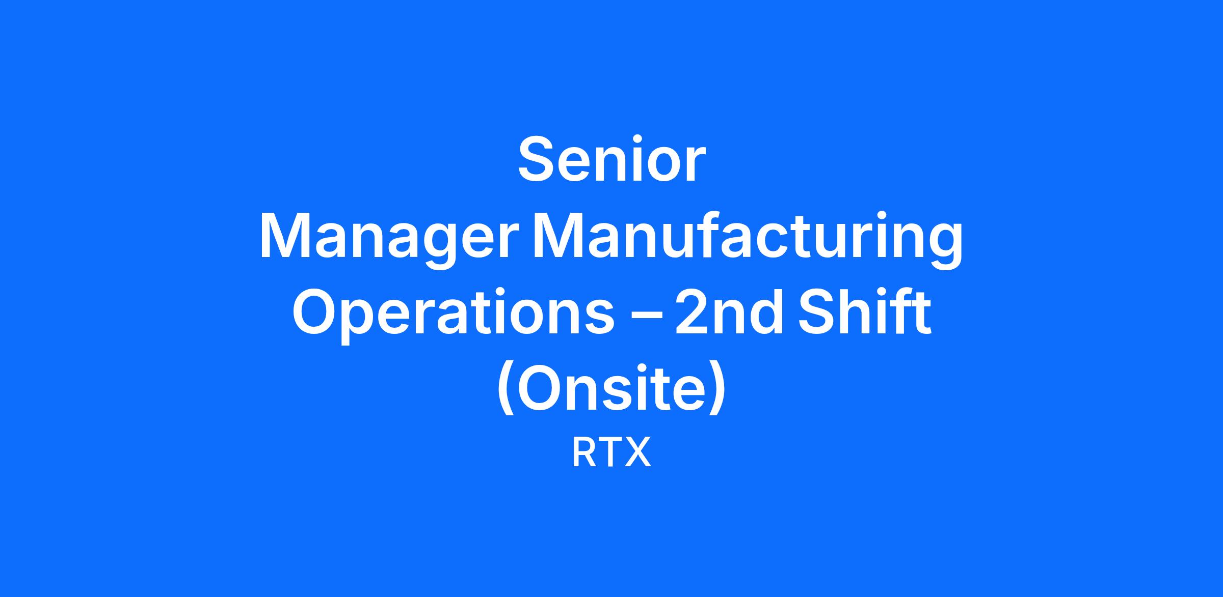 Not RequiredWe are seeking a highly motivated and experienced Senior Manager Manufacturing Operations – 2nd shift to lead operations from Friday through Sunday. This role is critical to ensure seamless operations during the weekend shift, maintaining productivity, quality standards, and achieving business objectives. The Senior Manager Manufacturing Operations – 2nd Shift will lead a team of operations supervisors, monitor performance, and ensure adherence to safety, compliance, driving output and operational excellence initiatives.