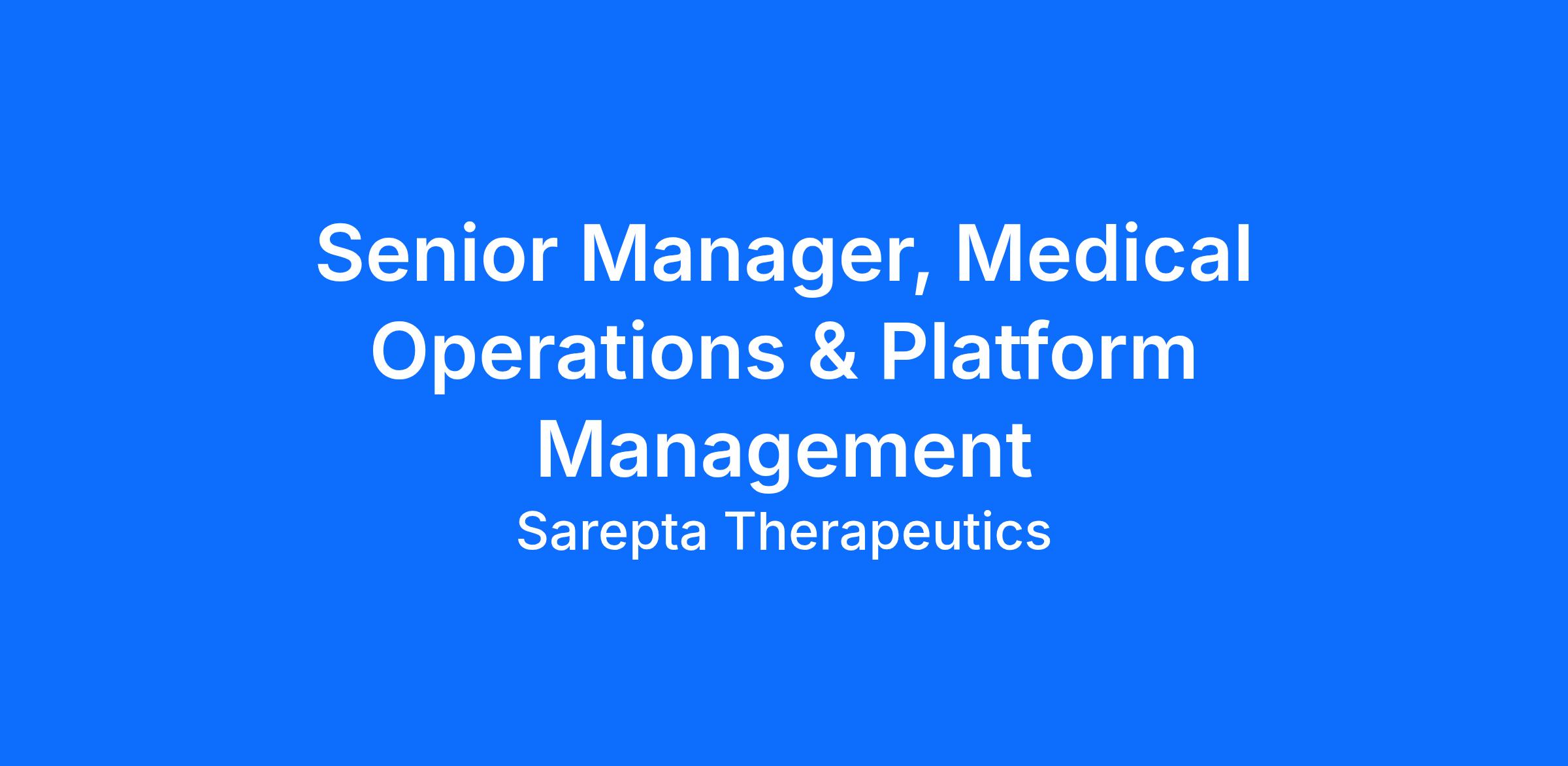 The Senior Manager, Medical Operations & Platform Management is an operational leader within Global Medical Affairs (GMA), responsible for driving operational excellence across International Engagement and RNA therapies. This role will help lay the operational foundation for future expansion of Medical Affairs platforms, requiring scalable processes that can support increasing scientific complexity across Sarepta’s evolving pipeline. This role oversees planning, execution, and governance of key initiatives. The Senior Manager will partner with cross-functional teams to optimize processes, manage resources, and support the delivery of high-quality outputs that support Sarepta’s mission and scientific engagement strategy. The Senior Manager reports to the Associate Director and may support GMA’s enterprise operations, as needed.