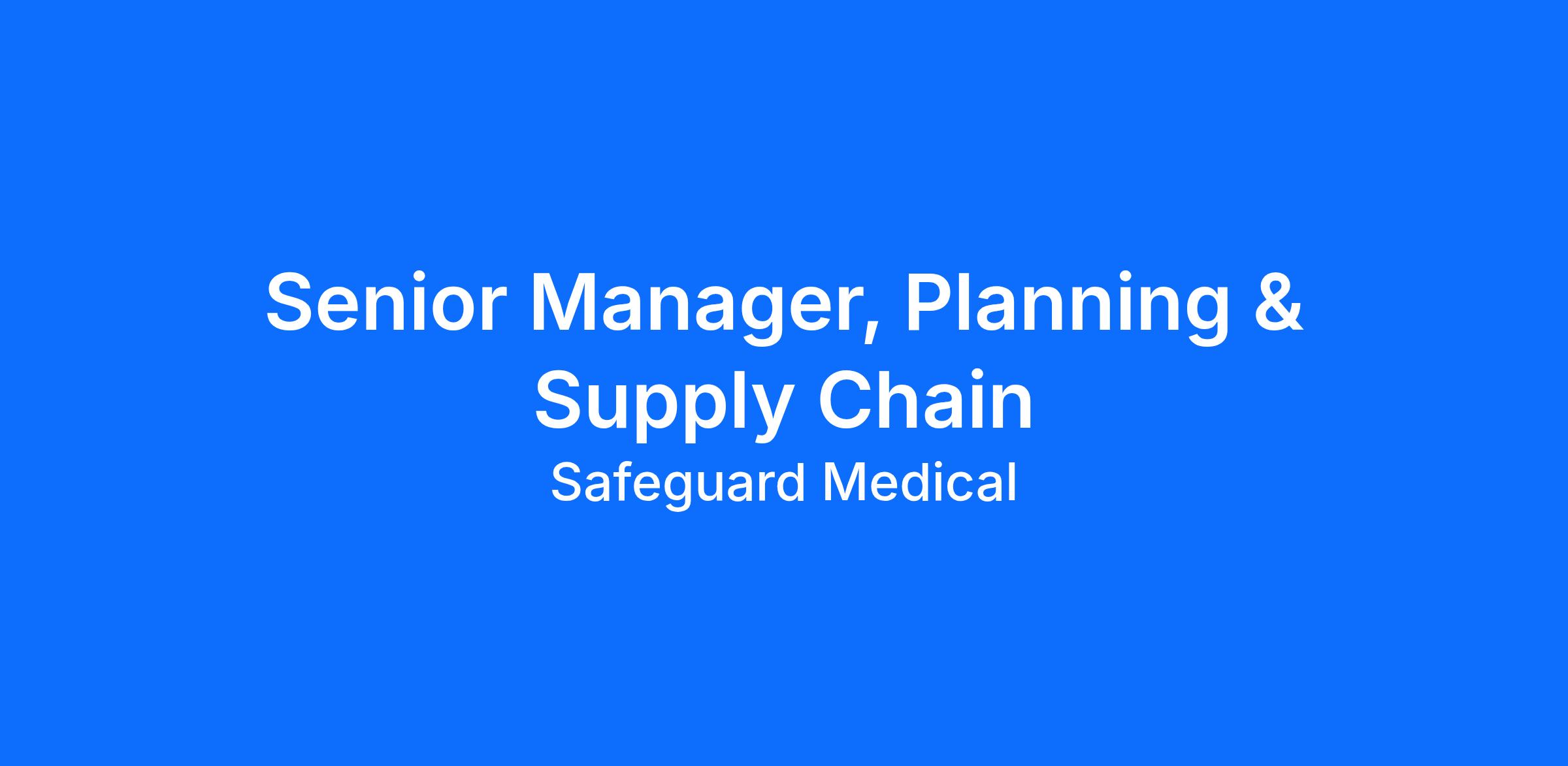 We are seeking a Senior Manager, Planning and Supply Chain to assume responsibility for overseeing all planning, purchasing, and materials management activities supporting production and distribution. This role leads the North American planning organization and is accountable for maintaining strong supplier performance, ensuring on-time delivery, competitive pricing, and optimal inventory levels. The position will report full time to our company HQ in Huntersville, NC and is a key contributor to SIOP processes and reports to the Director of Global Supply Chain. This isn’t just a job—it’s a chance to be part of something bigger. At Safeguard Medical, every role plays a part in our mission to preserve life and deliver excellence across the globe.