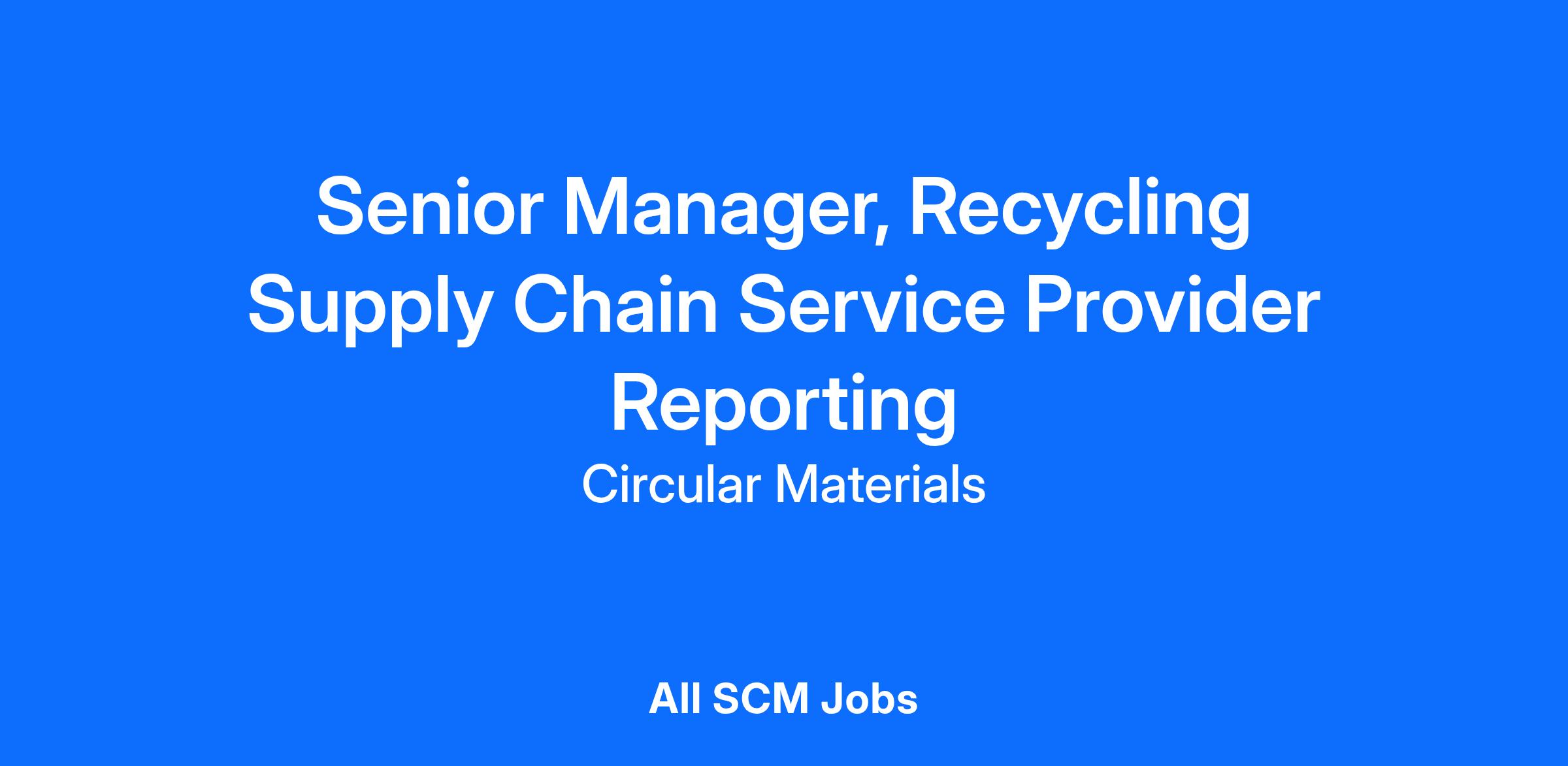 Think you would be a good fit for our Senior Manager Recycling Supply Chain Service Provider Reporting position? We want to hear from you!