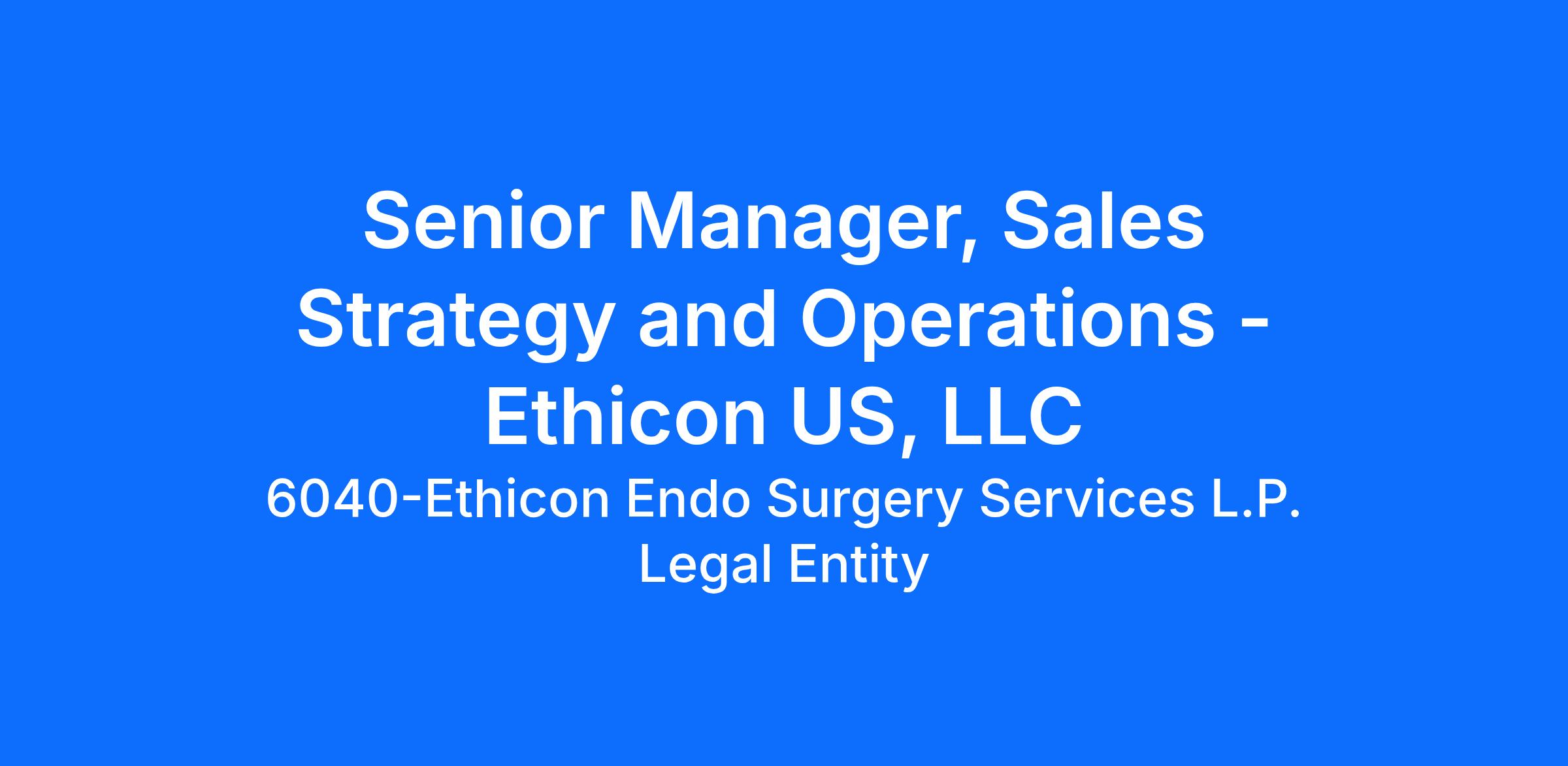 Ethicon US LLC, part of the Medical Devices Group within the Johnson & Johnson Family of Companies, is recruiting for a Senior Manager, Sales Strategy and Operations. This position will be based on the Raritan, NJ Campus.