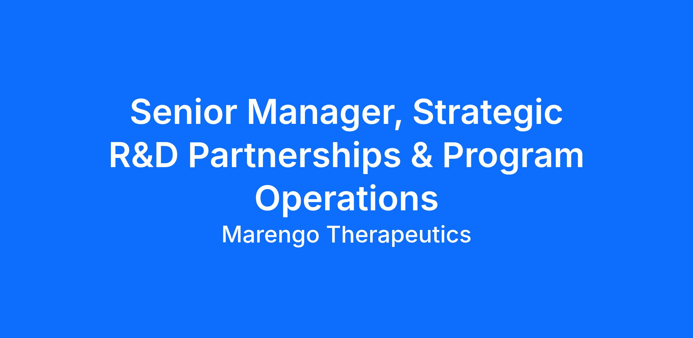 Marengo seeks a Senior Manager, Strategic R&D Partnerships & Program Operations—a high-impact role at the intersection of preclinical program operations, scientific communication, and business strategy. The ideal candidate combines operational rigor with scientific fluency and can translate complex R&D work into clear narratives for internal and external stakeholders.