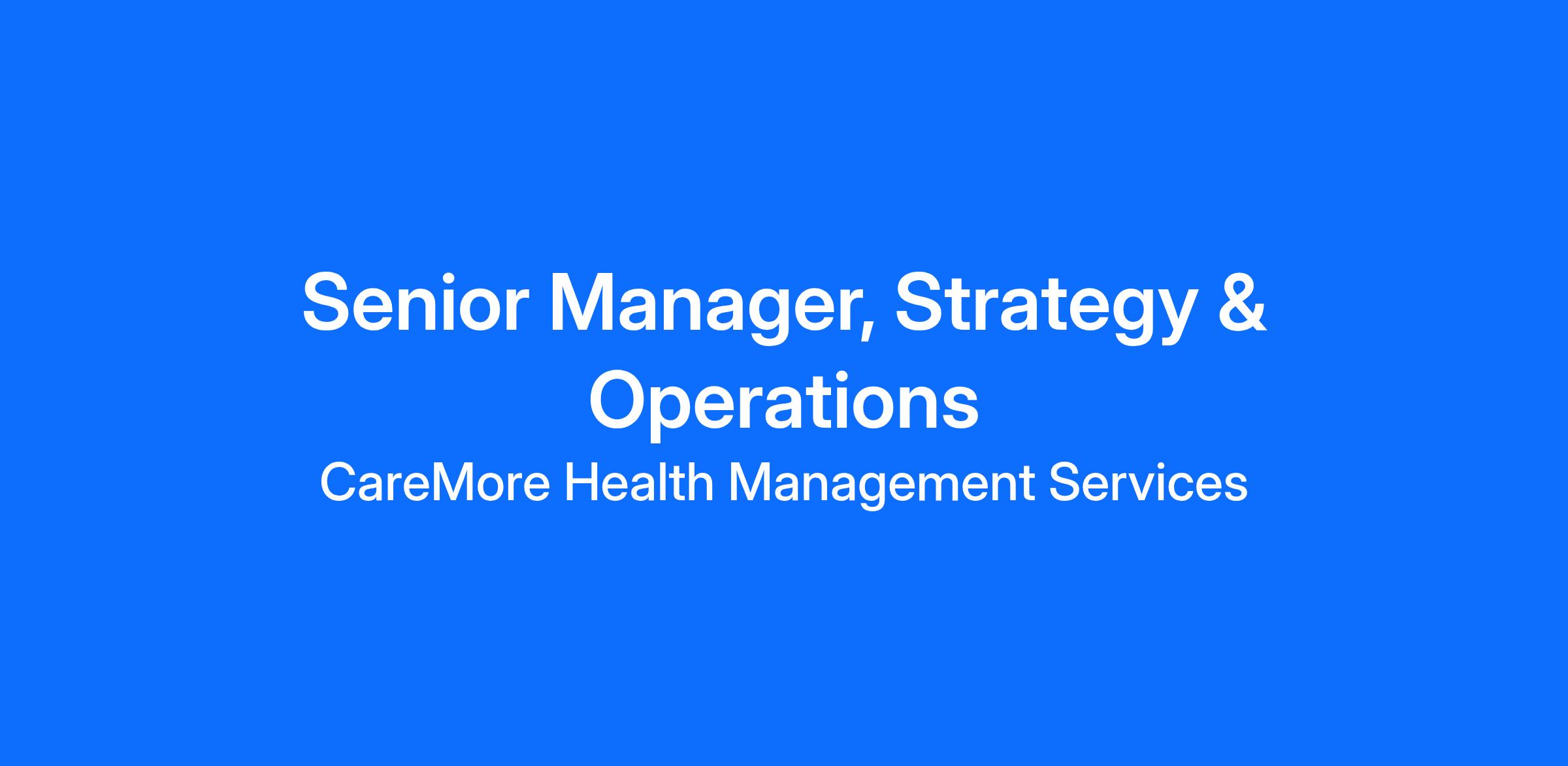 The Senior Manager, Strategy & Operations will be responsible for driving enterprise-wide planning, operations, and strategy for CareMore Health. This leader will play a central role in aligning clinical, administrative, and shared services functions with business objectives, ensuring scalable growth and performance optimization across Global Risk populations.