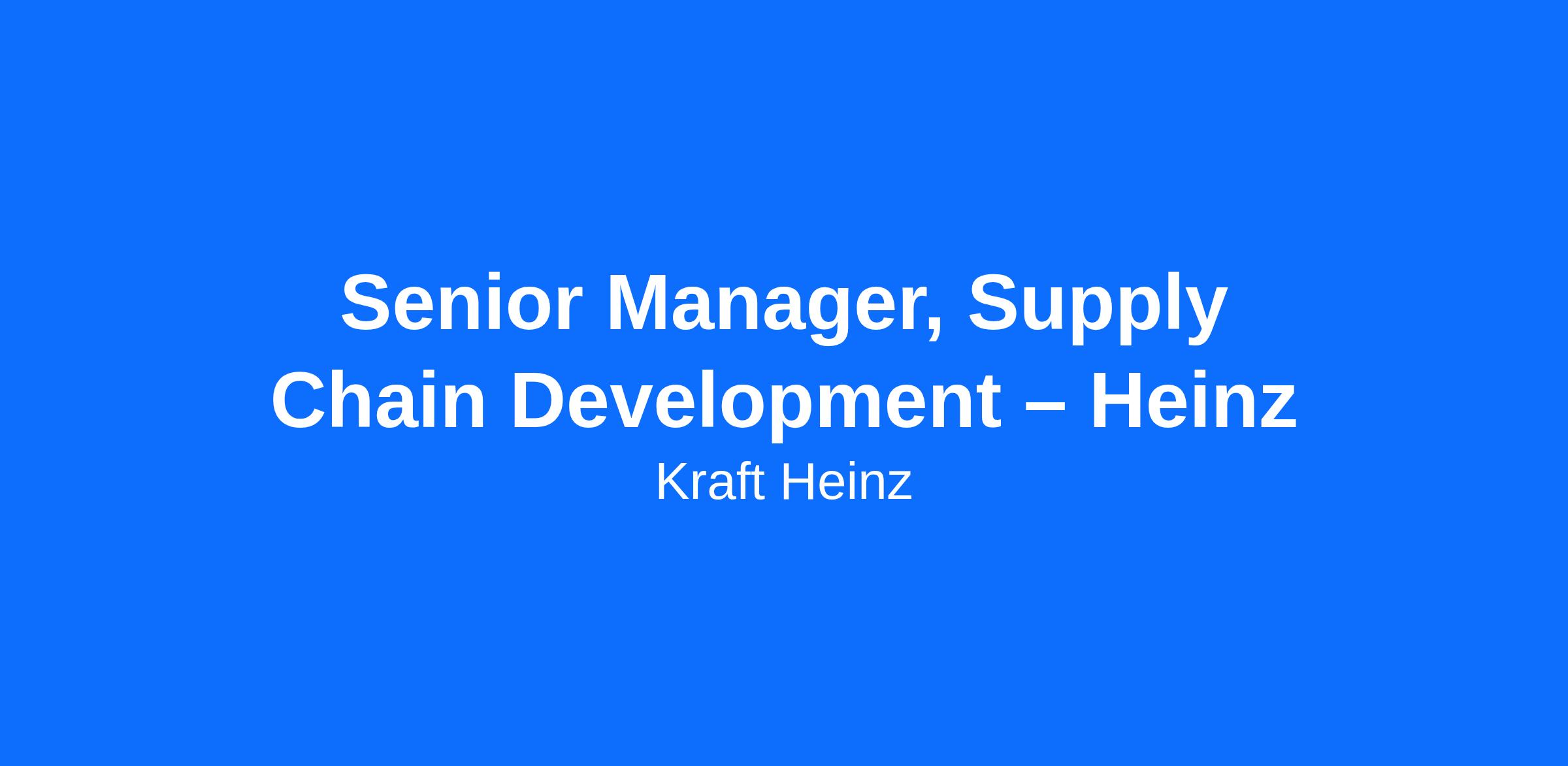 - This Senior Manager role in Supply Chain Development is focused on end-to-end delivery and execution of Heinz innovation, capacity, growth, cost savings and supply continuity projects.