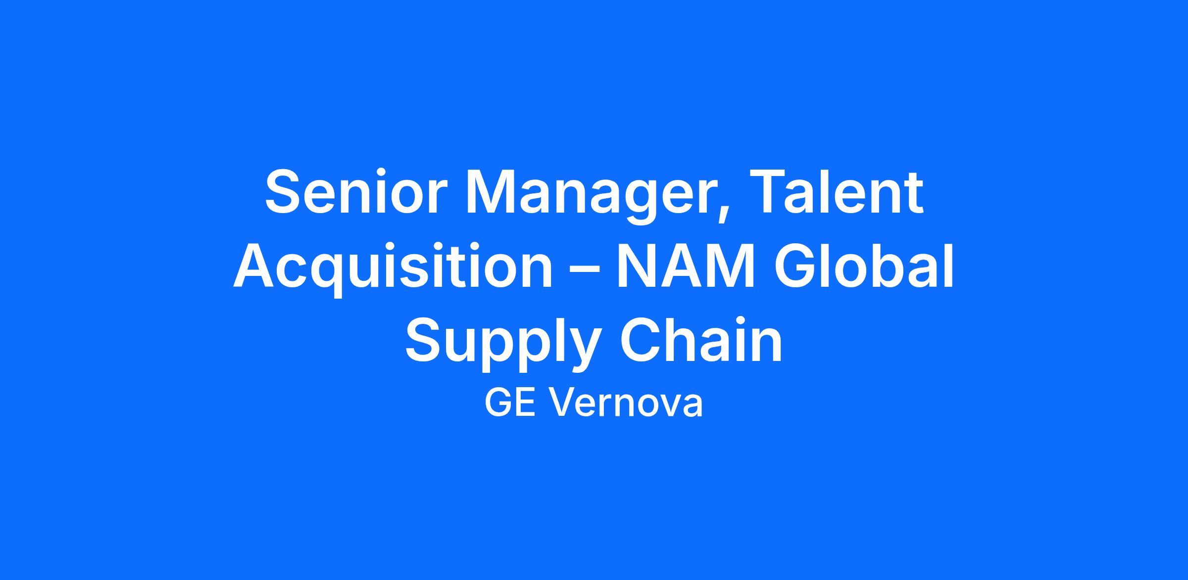 The Senior Manager, Talent Acquisition – NAM Global Supply Chain (GSC) leads a high‑performing team with care, rigor, and a strong focus on delivering exceptional client and business outcomes. This leader partners closely with HR Business Partners and business leaders, fostering inclusive collaboration while navigating complexity and change.