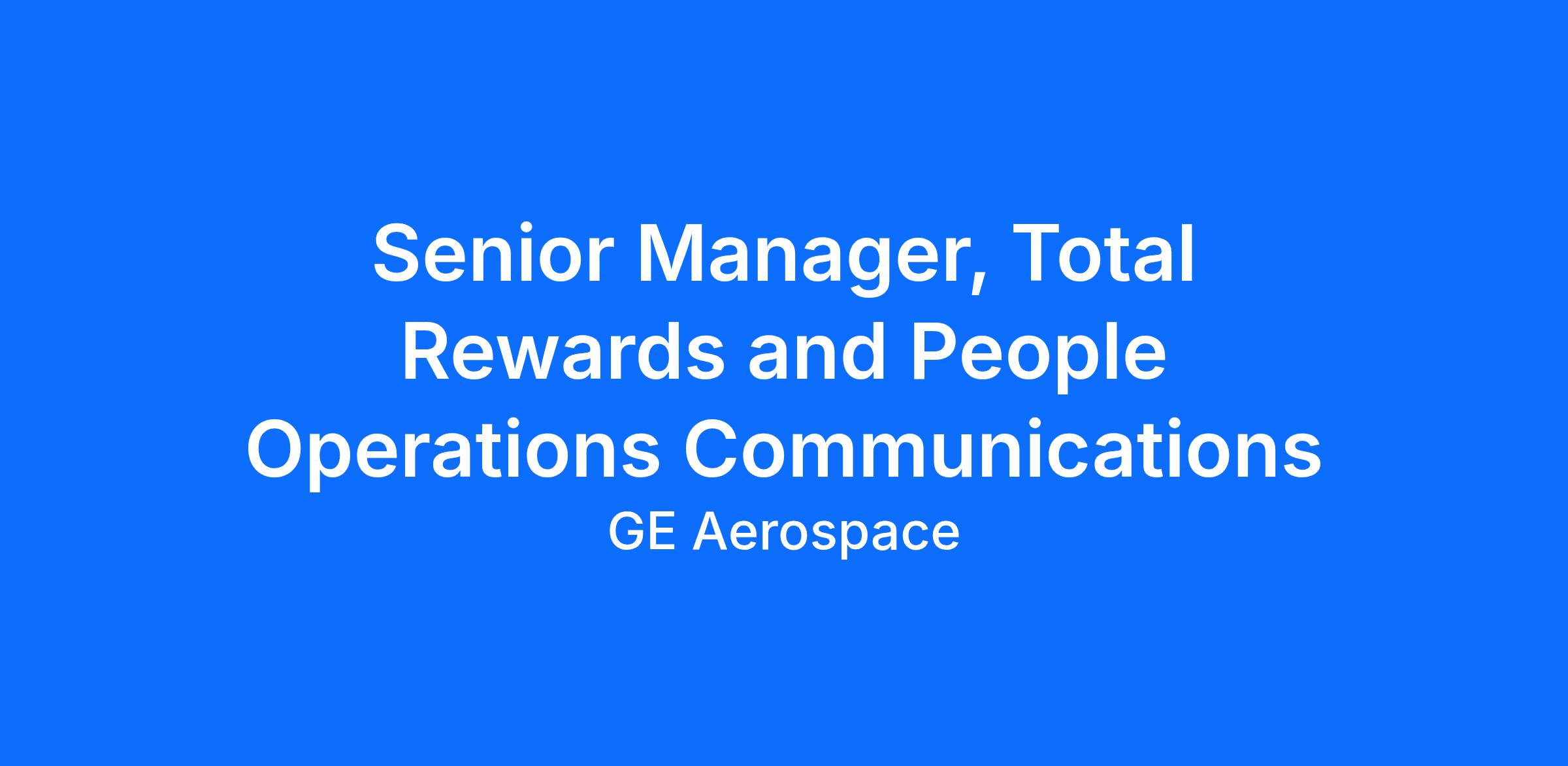 This role is a team leader role and part of GE Aerospace’s Employee Communications team. The ideal candidate will have experience in Total Rewards, benefits, compensation, and employee communications, leading and influencing teams, ability to build and manage relationships, balancing day-to-day execution with long-term strategy creation, and operational rigor. Ability to work in fast-paced, dynamic organization.