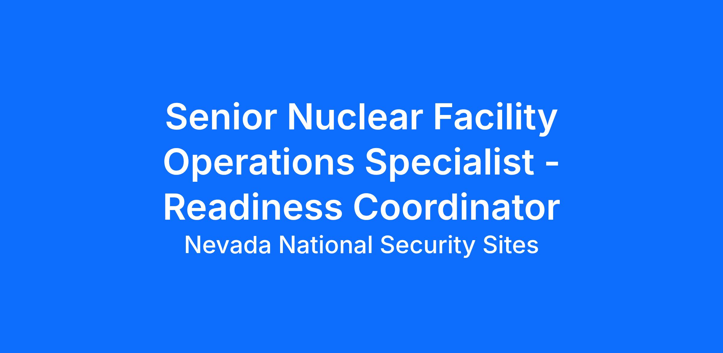 ResponsibilitiesStockpile Experimentation and Operations Organization / Nuclear Support Services is actively looking for a candidate to perform the duties of Readiness Coordinator.
