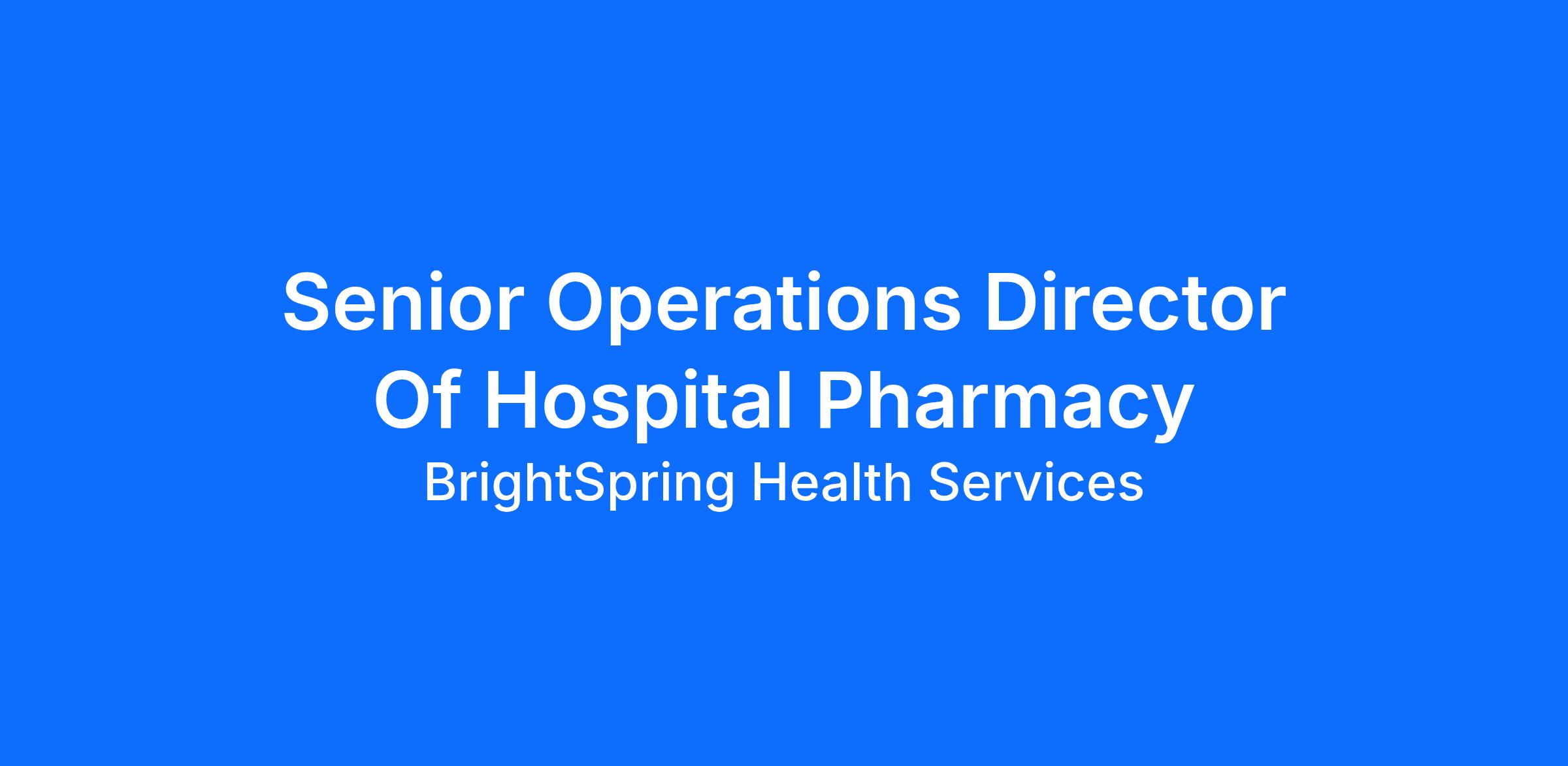 Senior Operations Director Of Hospital Pharmacy