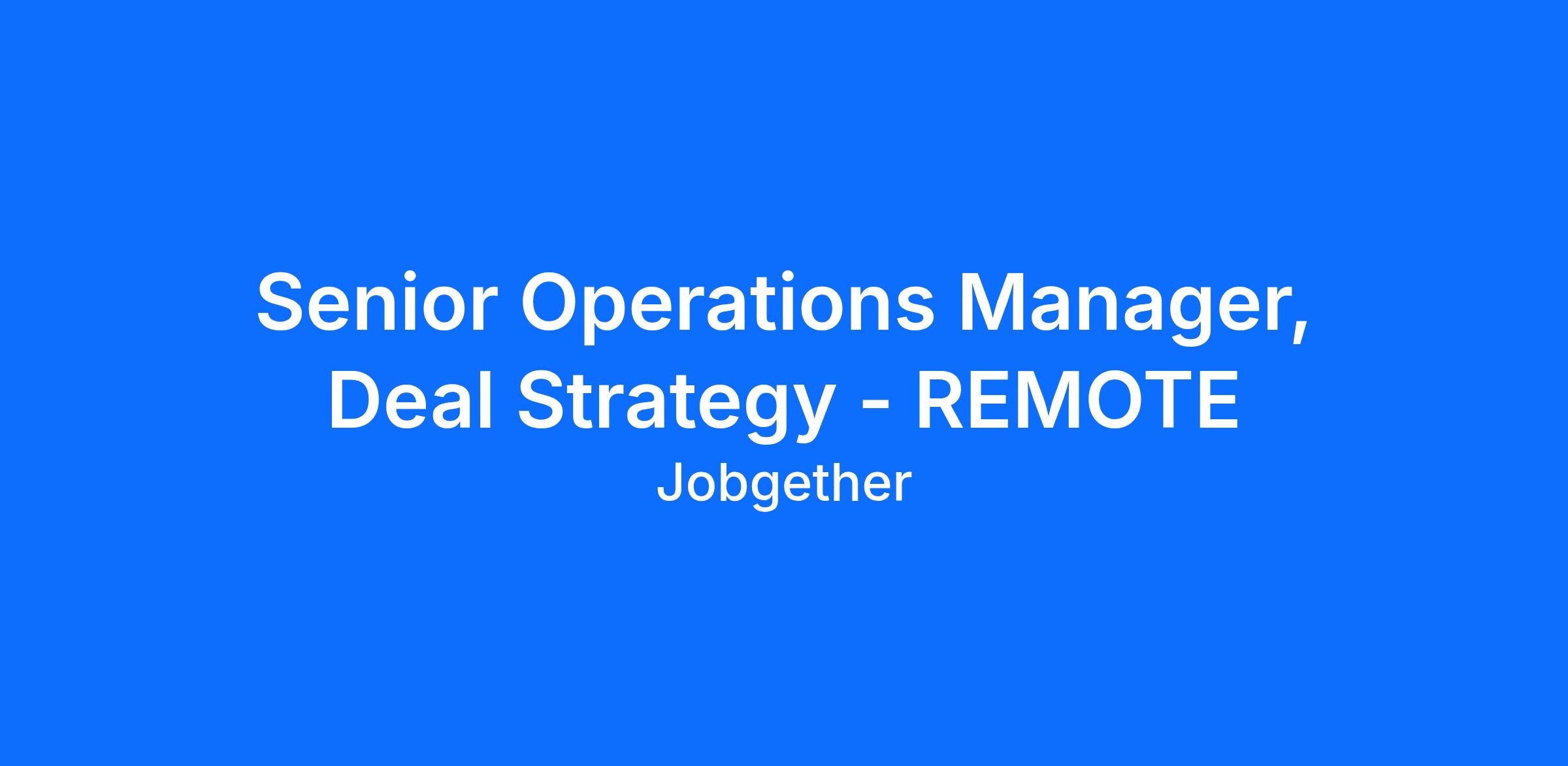 This position is posted by Jobgether on behalf of a partner company. We are currently looking for a Senior Deal Strategy & Operations Manager - REMOTE. In this critical role, you will act as a strategic partner directly impacting the commercial strategy and operations. You will be responsible for managing complex enterprise deals, collaborating with various teams, and driving process improvements that enhance efficiency and revenue. This role emphasizes the importance of executing high-value transactions while ensuring compliance with company standards. Join us in this exciting opportunity to shape the future of the workforce with AI-driven strategies.