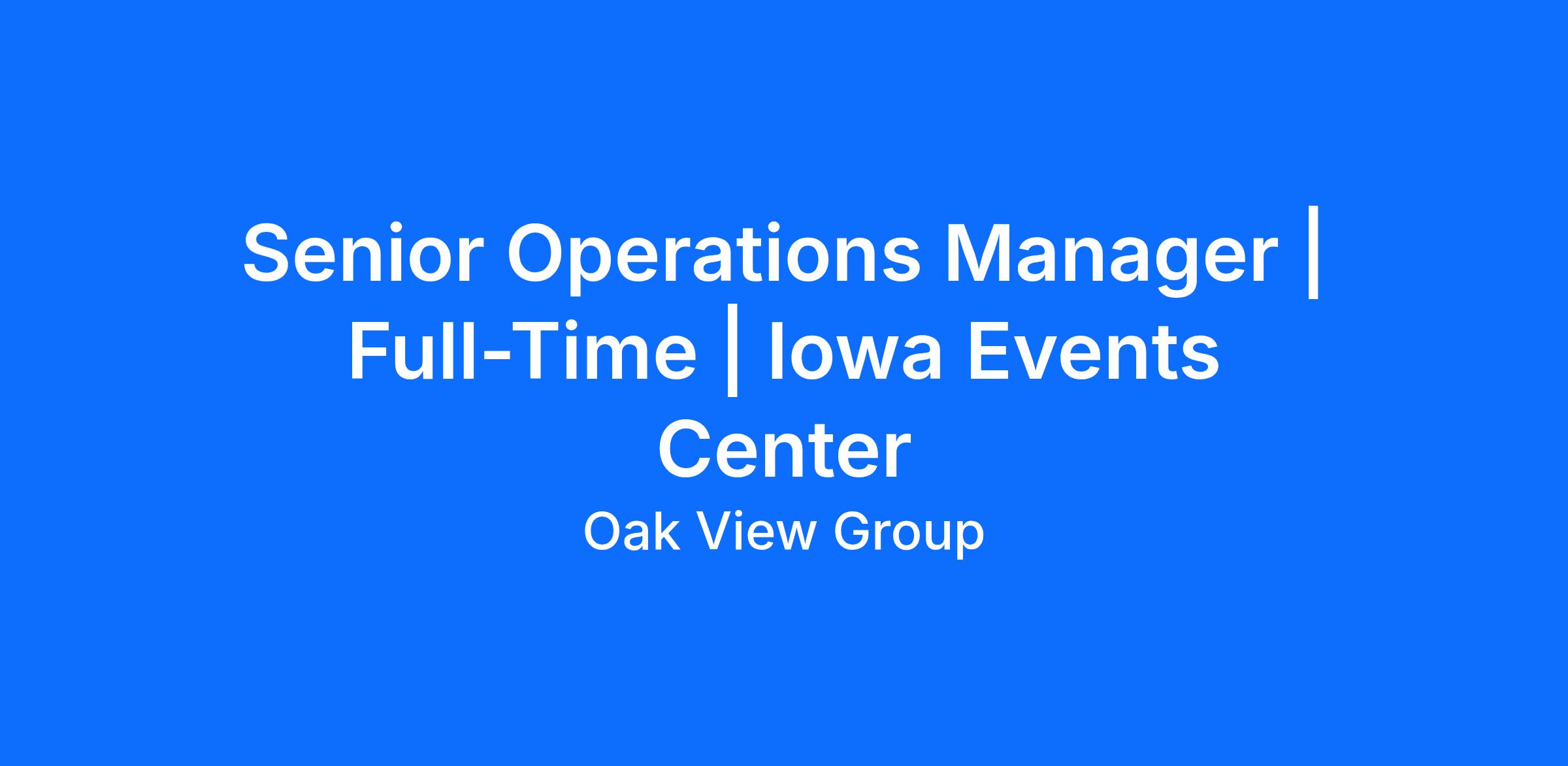 Under the direction of the Director of Operations, the Senior Operations Manager provides direct supervision to 5 direct reports including: Operations Managers & Operations Supervisors, specifically in the areas of housekeeping, room sets and convention services of the Iowa Events Center.