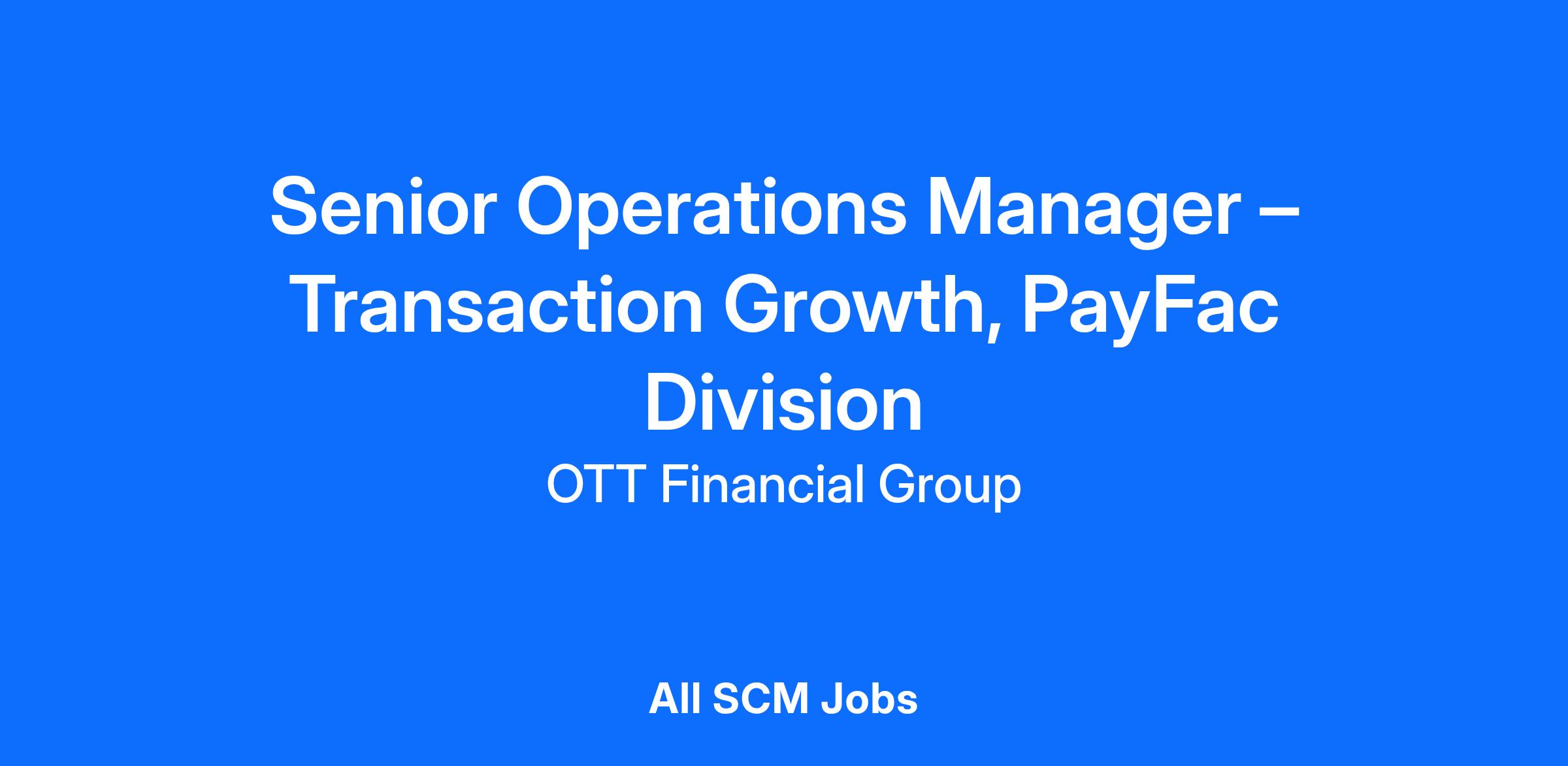 OTT Pay is seeking a growth-oriented and data-driven Senior Operations Manager to join its PayFac division. This role focuses on increasing transaction volume and value through data insights, merchant behavior analysis, and digital growth strategies—while promptly identifying and addressing transaction declines.