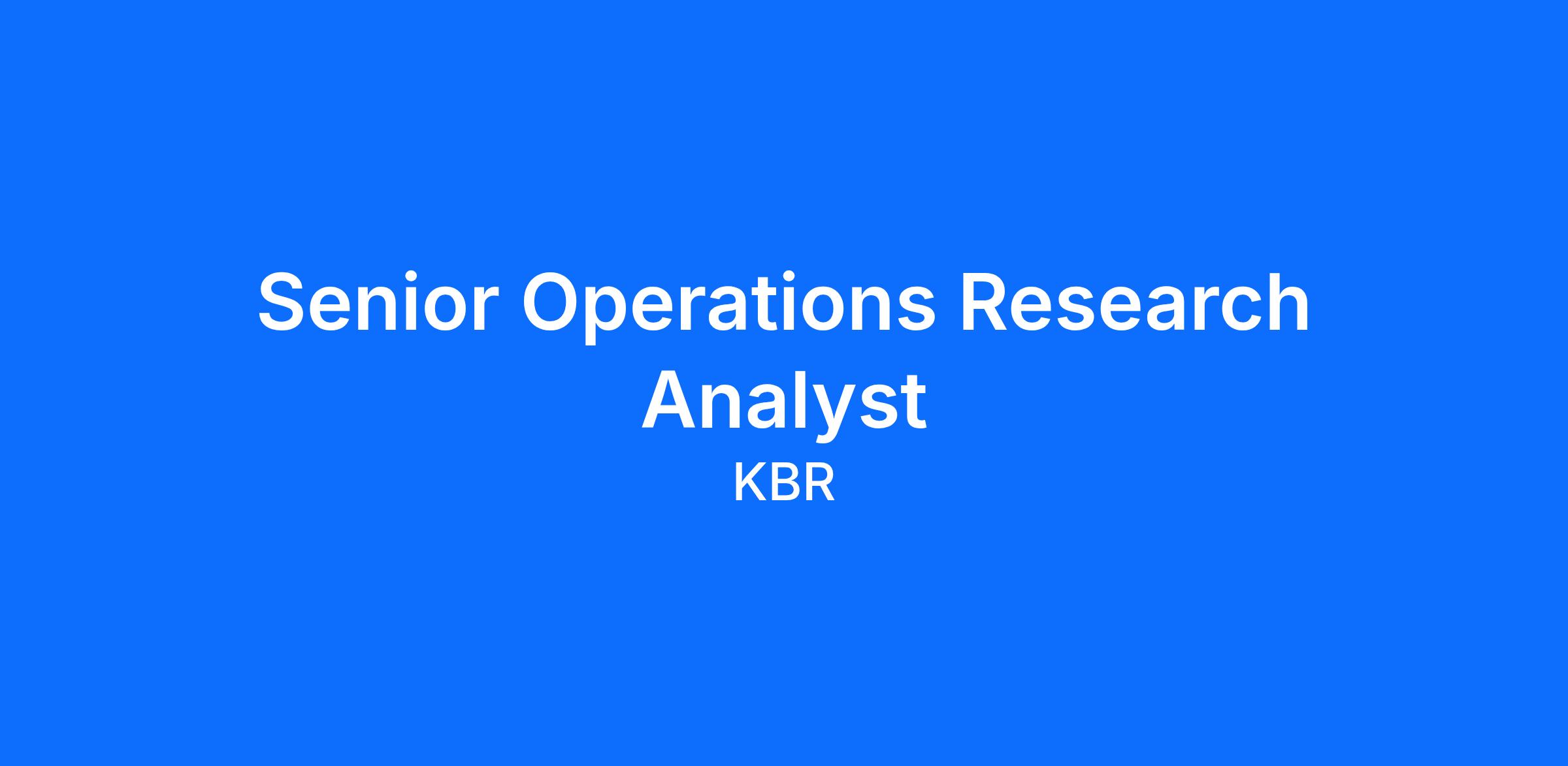 Senior Operations Research Analyst