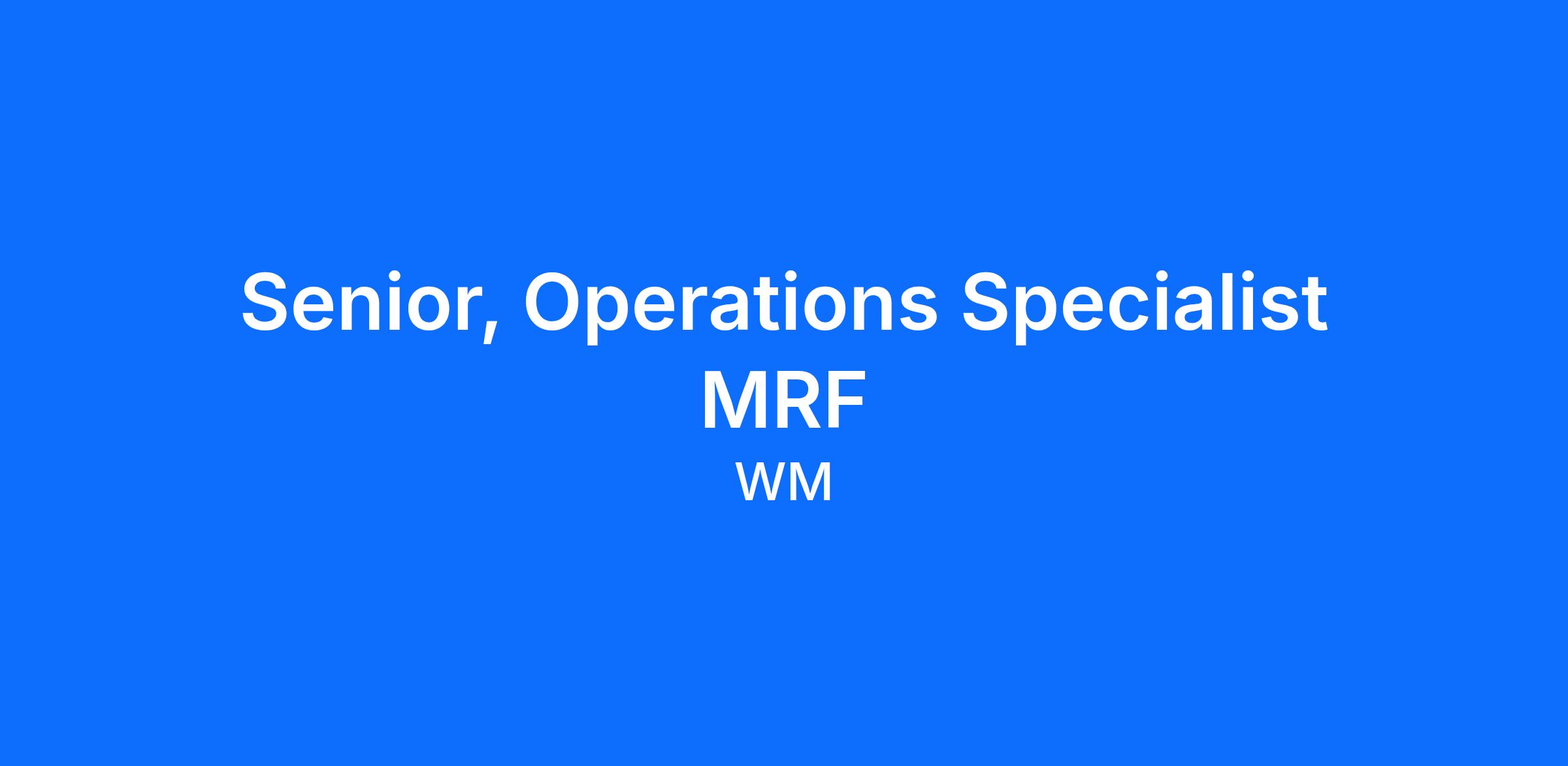 Senior, Operations Specialist MRF