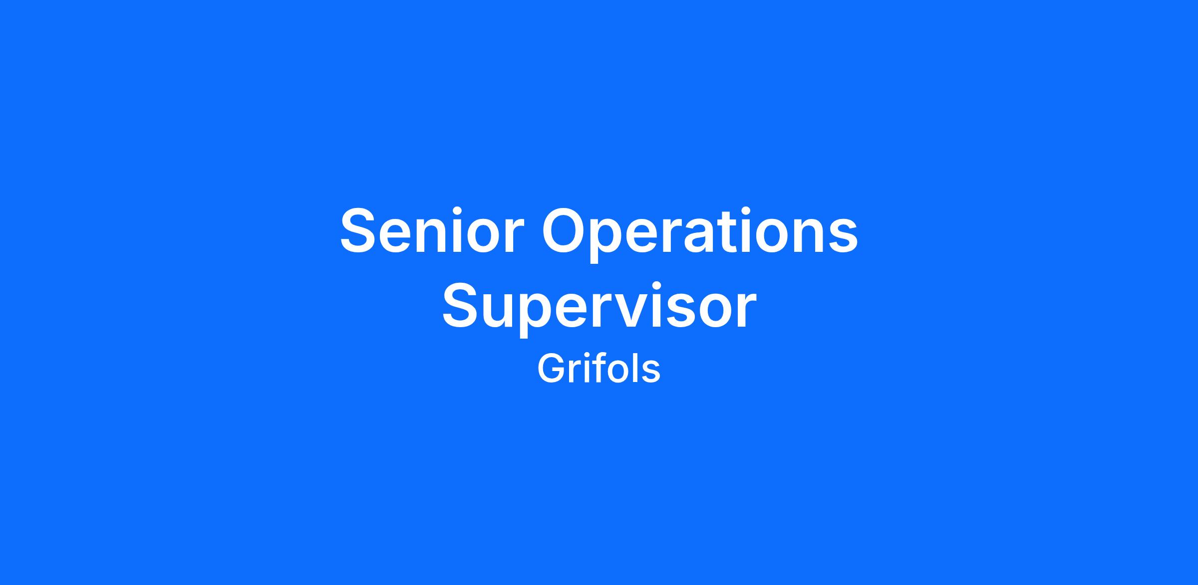 JOB TITLE: SENIOR OPERATIONS SUPERVISOR