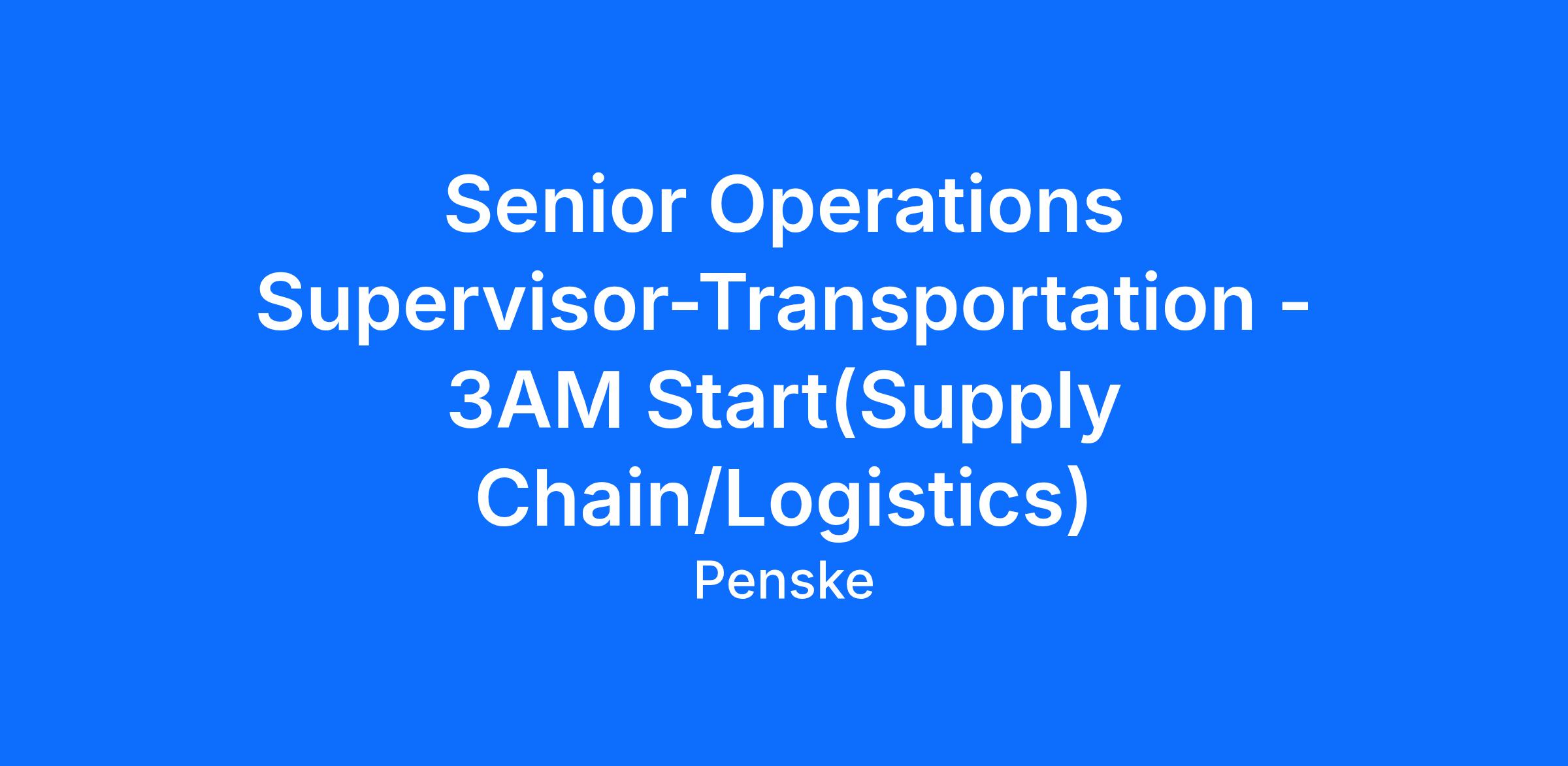 Penske Logistics is seeking a proven leader with relevant experience and skills to join our team of transportation and logistics professionals. We are seeking a candidate to supervise drivers at one of our locations.