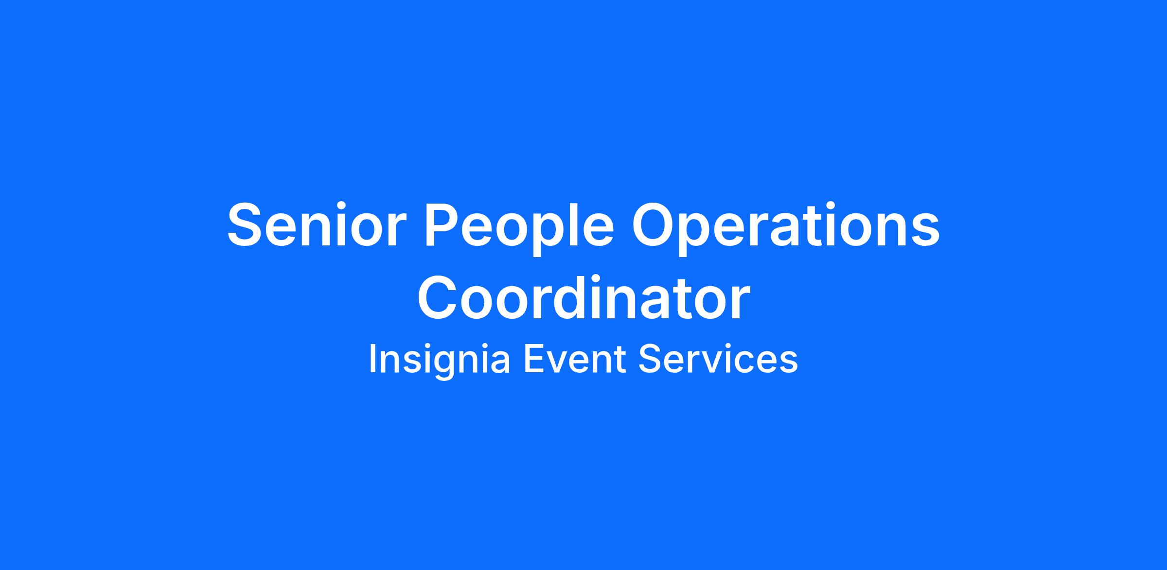 Under the supervision of the People Operations Manager, the Senior People Operations Coordinator is responsible for supporting Insignia's people strategy and independently executing core people operations functions within their assigned areas. This role plays an important part in the day-to-day delivery of HR services, including hiring coordination, onboarding, employee record management, payroll processing, and event-day coverage. The Senior People Operations Coordinator works closely with People Operations Manager to ensure a consistent, high-quality employee experience across the organization.