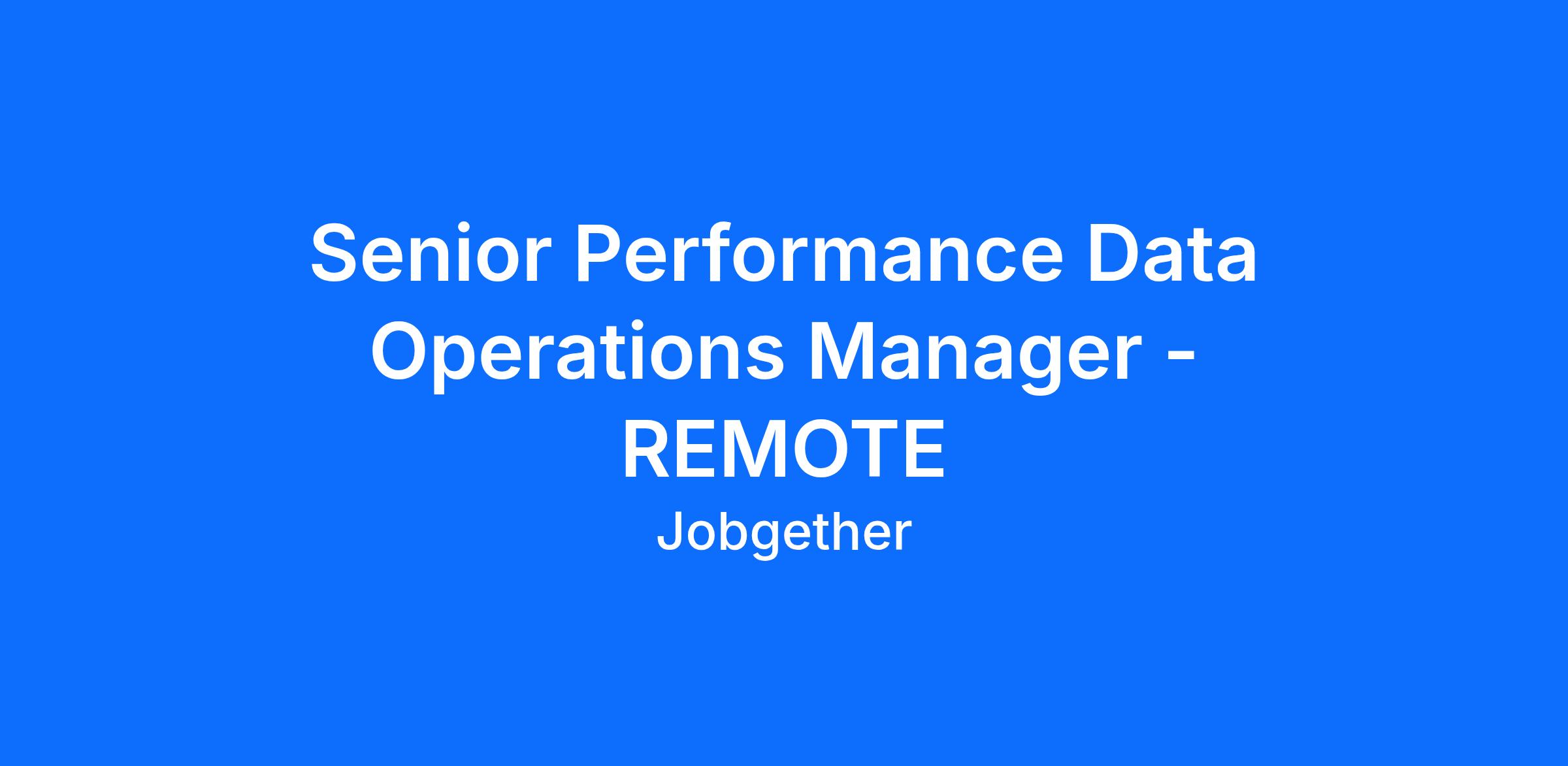 Senior Performance Data Operations Manager - REMOTE