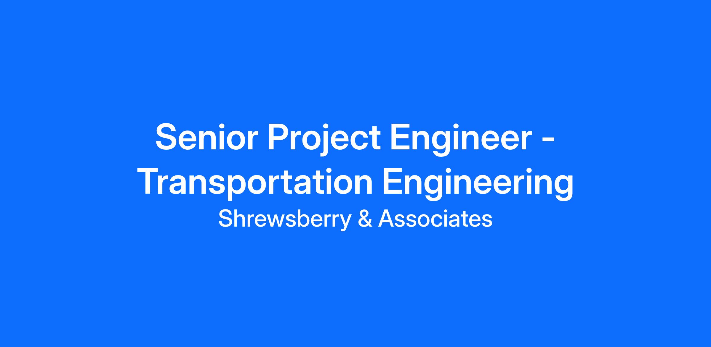 Are you passionate about Transportation Engineering? Do you want to join a great team and grow professionally? If so, the Senior Project Engineer position with Shrewsberry and Associates may be the perfect fit.