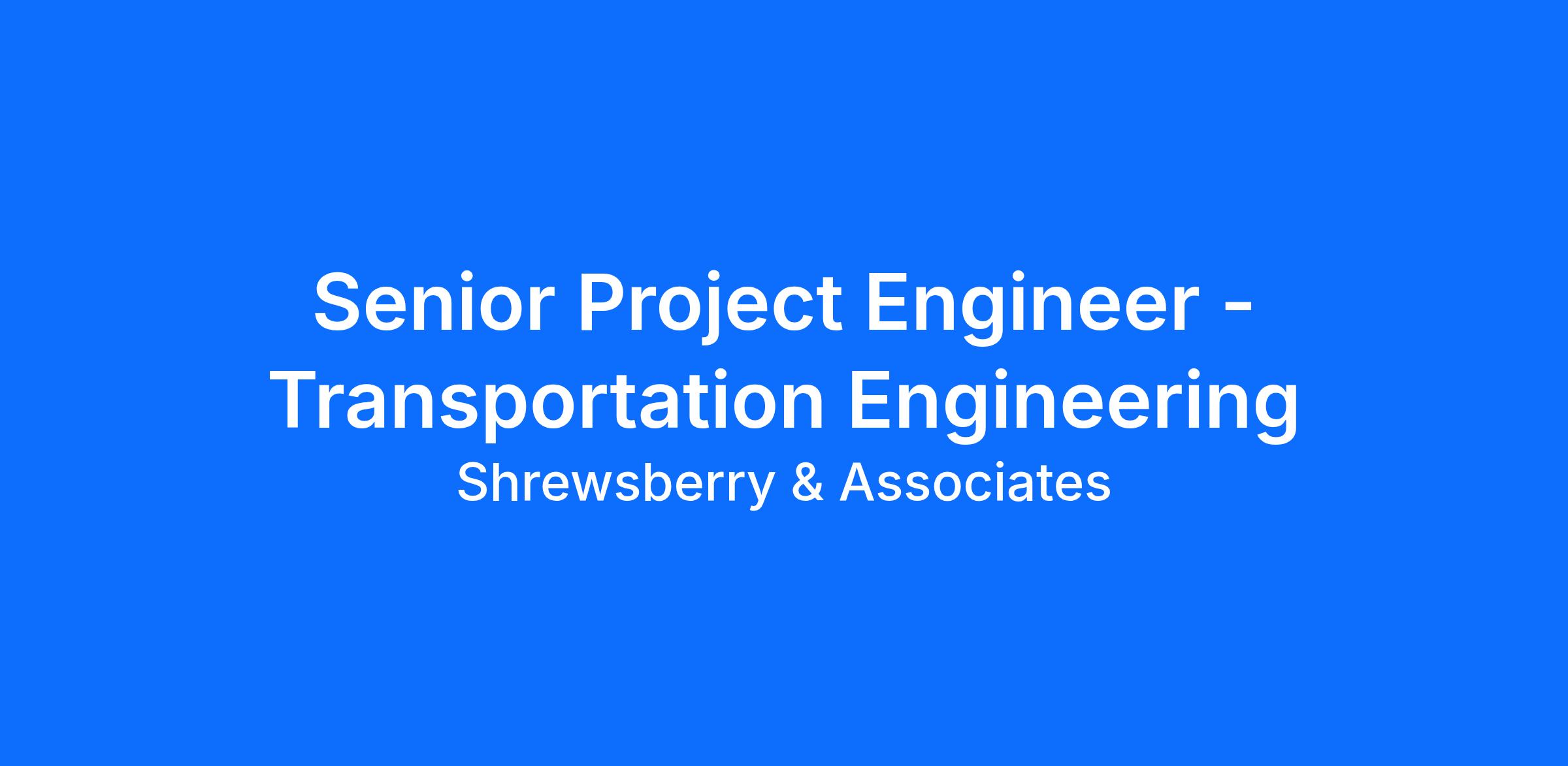 Are you passionate about Transportation Engineering? Do you want to join a great team and grow professionally? If so, the Senior Project Engineer position with Shrewsberry and Associates may be the perfect fit.