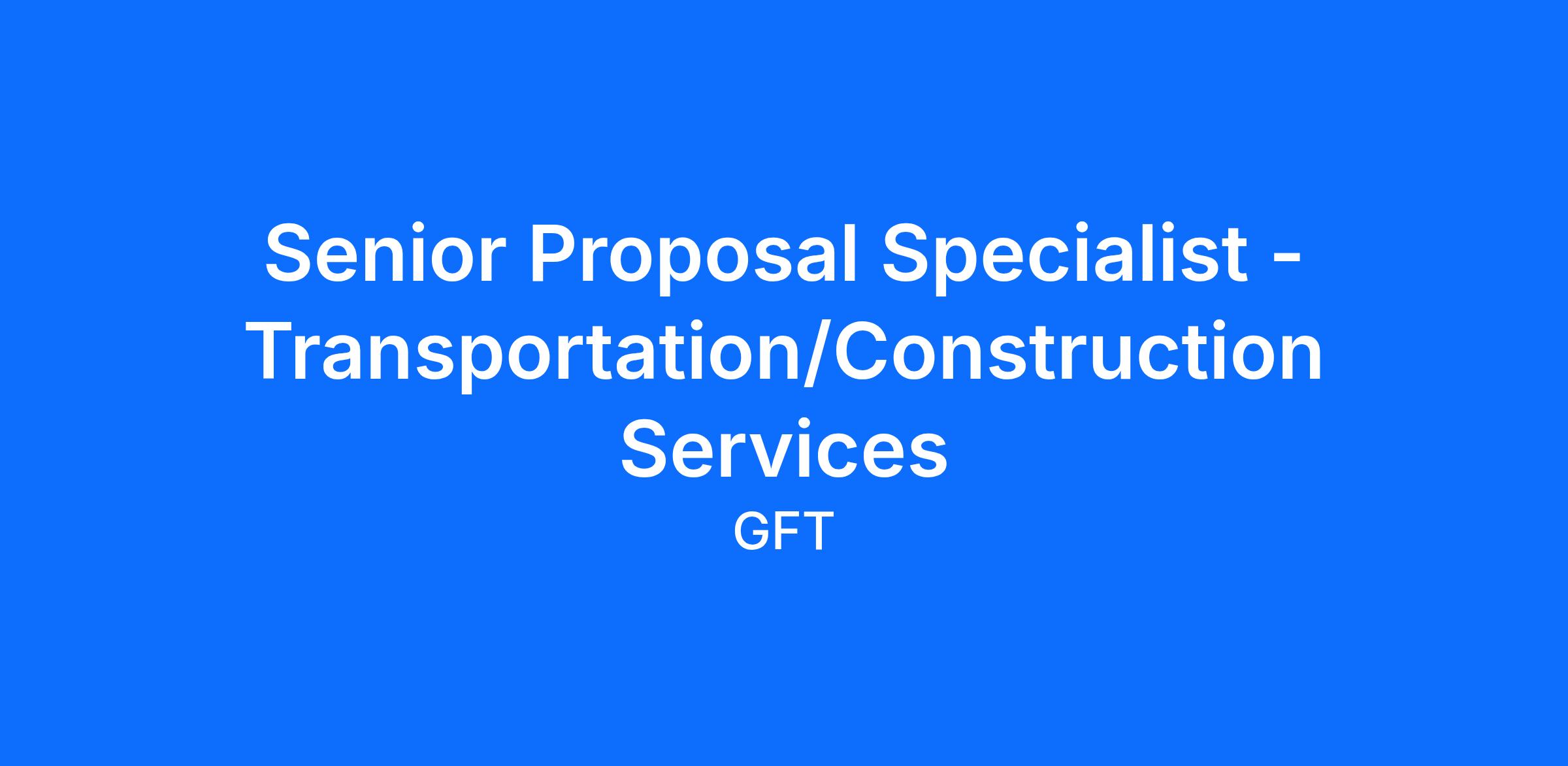 GFT is seeking a Senior Proposal Specialist to join our BD&M team within the MidAtlantic! In this role, you will apply strategic thinking, creative problem-solving, and strong organizational skills to support pursuits for our Transportation, Construction Services, and Buildings & Places teams. The position can be based in Mechanicsburg, Philadelphia, Valley Forge, Towson, and Owings Mills!