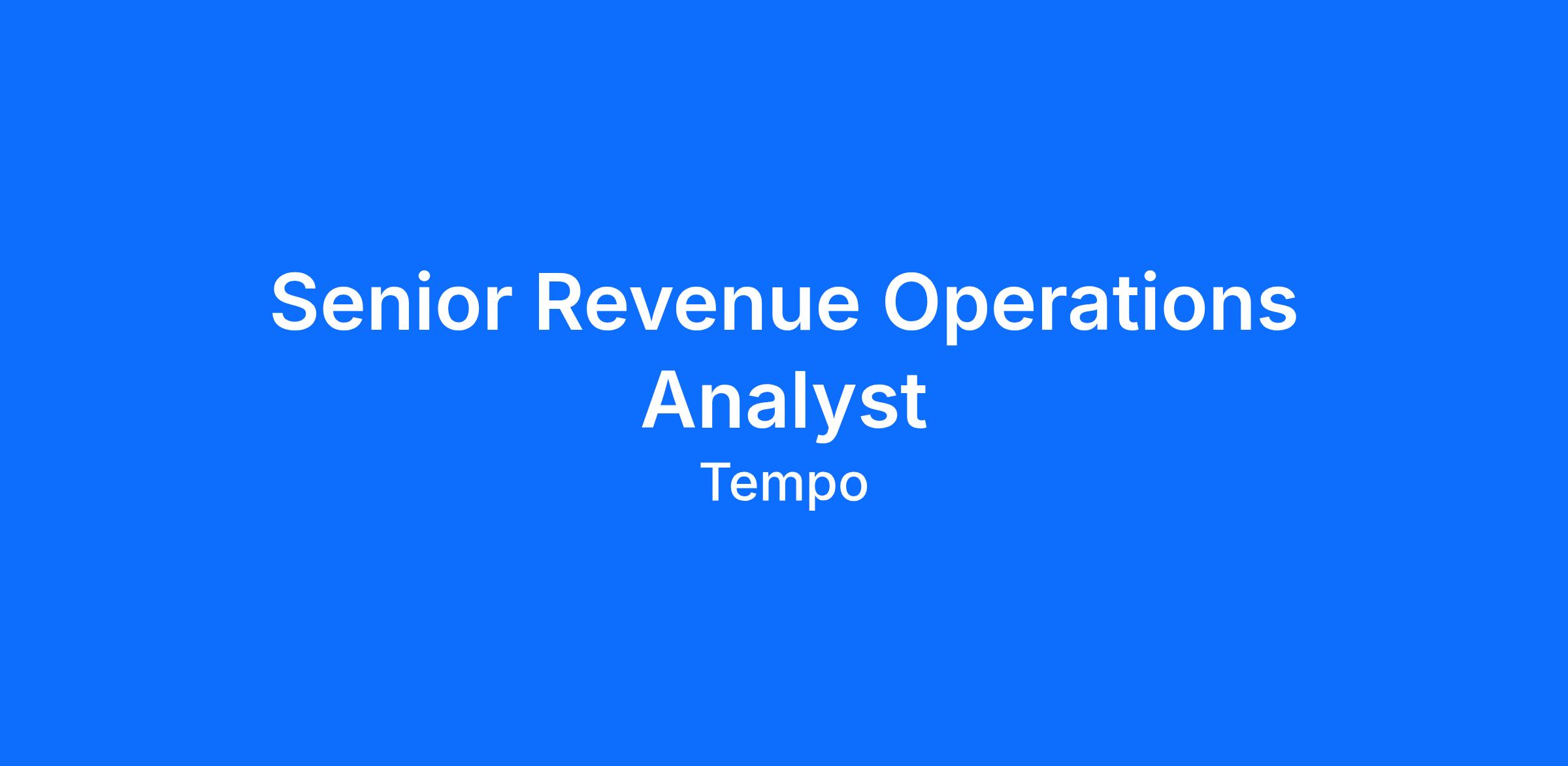The Sr. Revenue Operations (Rev Ops) Analyst will play a critical role in optimizing Tempo's revenue generation engine by supporting the development, implementation, and maintenance of core Rev Ops strategies and processes. A key part of this role involves rigorous analysis of sales performance metrics to provide actionable insights, driving sales efficiency and overall revenue growth. The analyst will partner closely with the Sales and Finance teams to ensure accurate and timely revenue forecasting, reporting, and collaborate on optimizing pricing strategies, contributing directly to the company's financial health and strategic decision-making.