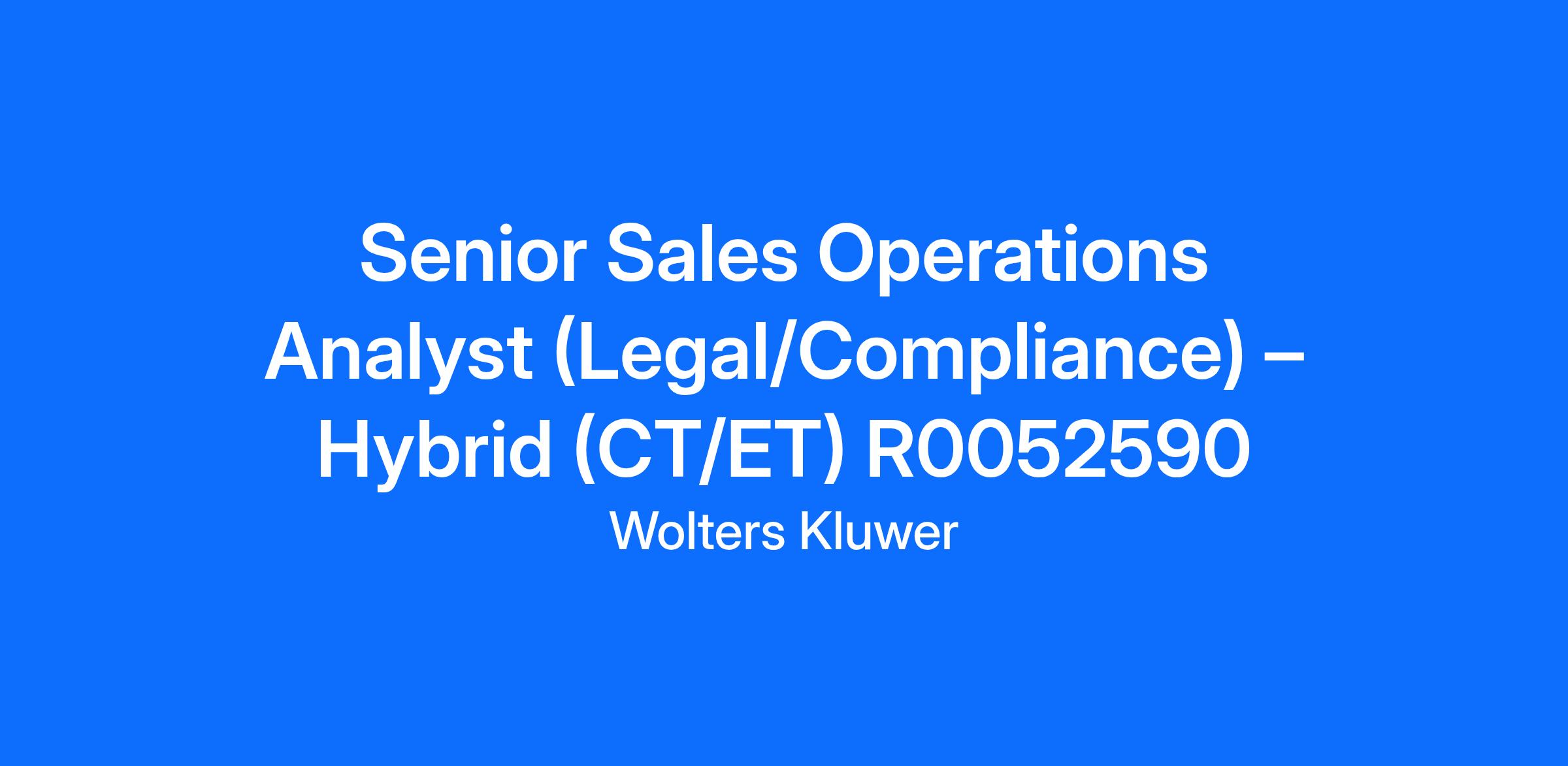 Senior Sales Operations Analyst (Legal/Compliance) – Hybrid (CT/ET) R0052590 | FCC | HQ SCOE – CS/C T Corporation System