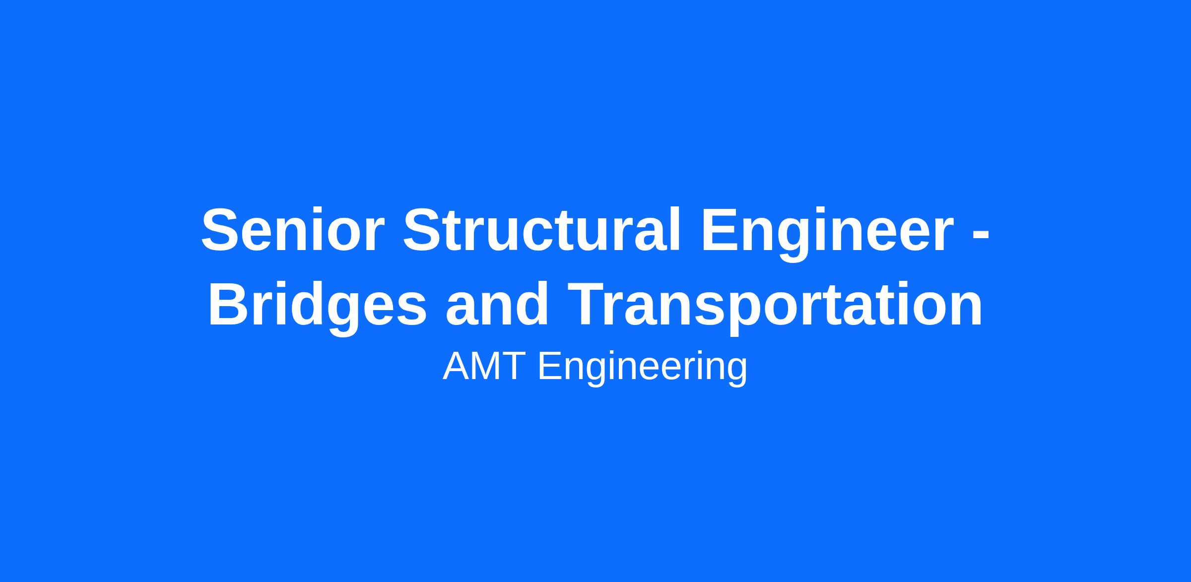 A. Morton Thomas and Associates, Inc. (AMT) is Growing! We are seeking a Senior Structural / Bridge Engineer with 10+ years of relevant experience in analysis and design of new and rehabilitation structures, to join the structural engineering team in our Rockville, MD or other office locations.