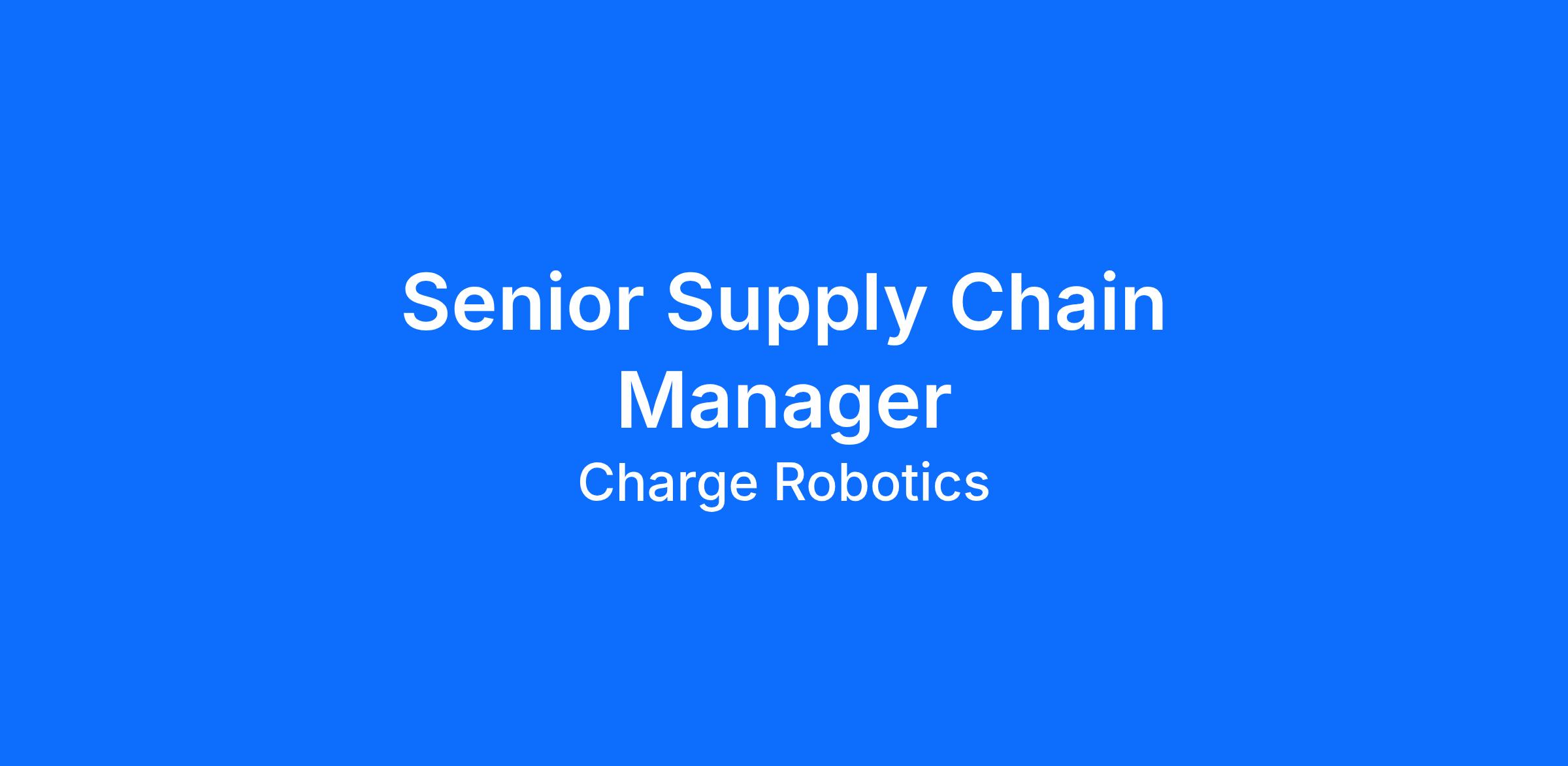 Drive end‑to‑end supply chain strategy for Charge’s hardware/robotic systems, balancing cost, quality, delivery, and risk across custom and off-the-shelf component inputs