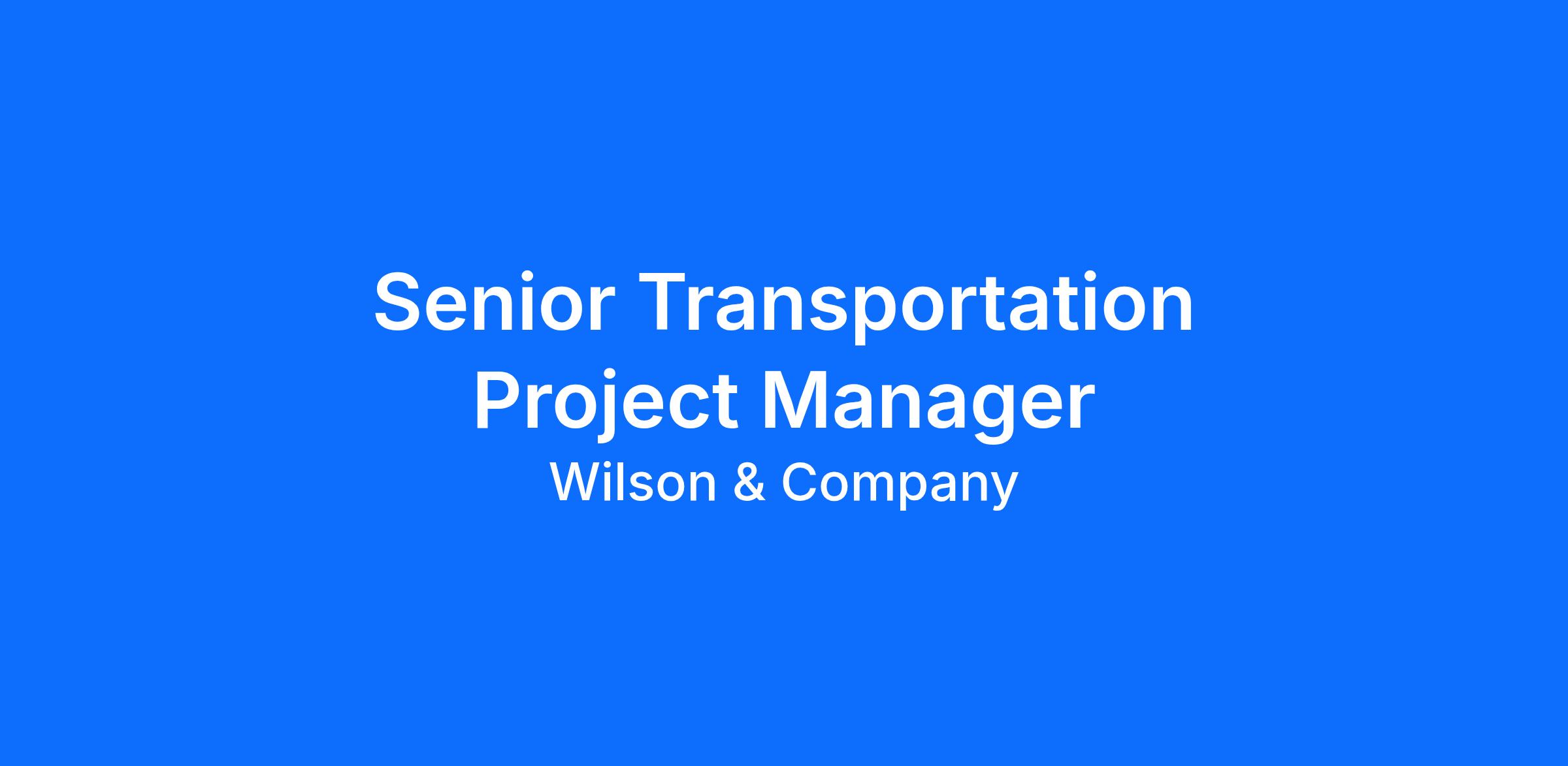 Wilson & Company is seeking an experienced Senior Transportation Project Manager with a background in Transportation/Roadway Design to join our Missouri practice. You will work closely with clients, other project managers and support staff to ensure the successful completion of projects. The ability to effectively coordinate staff efforts to ensure timely and cost-effective solutions to project requirements is a must. Job duties will include: