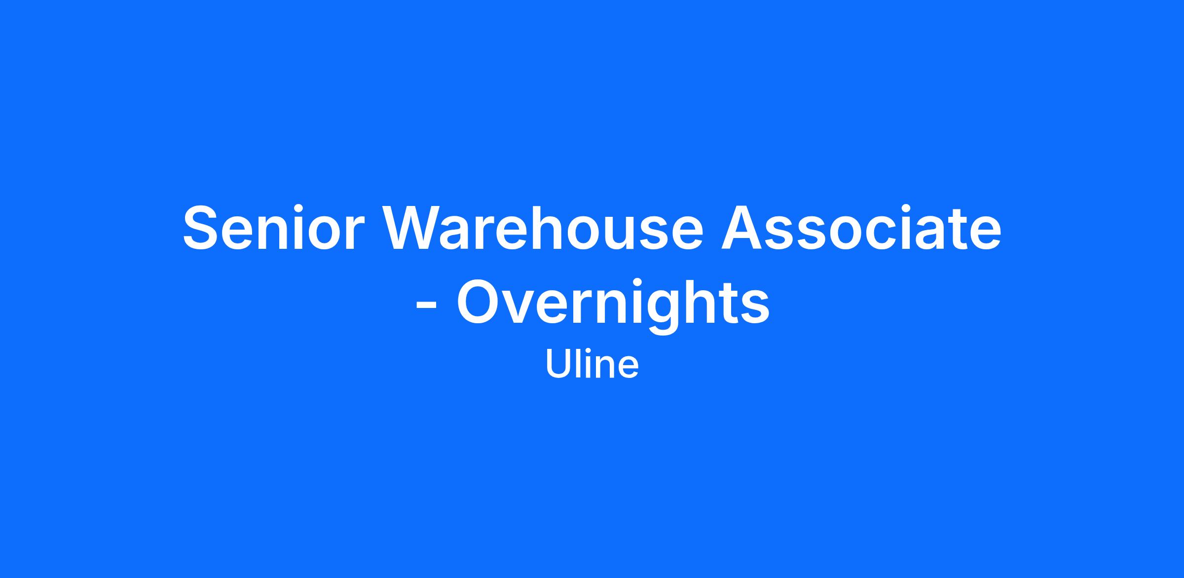 Senior Warehouse Associate - Overnights