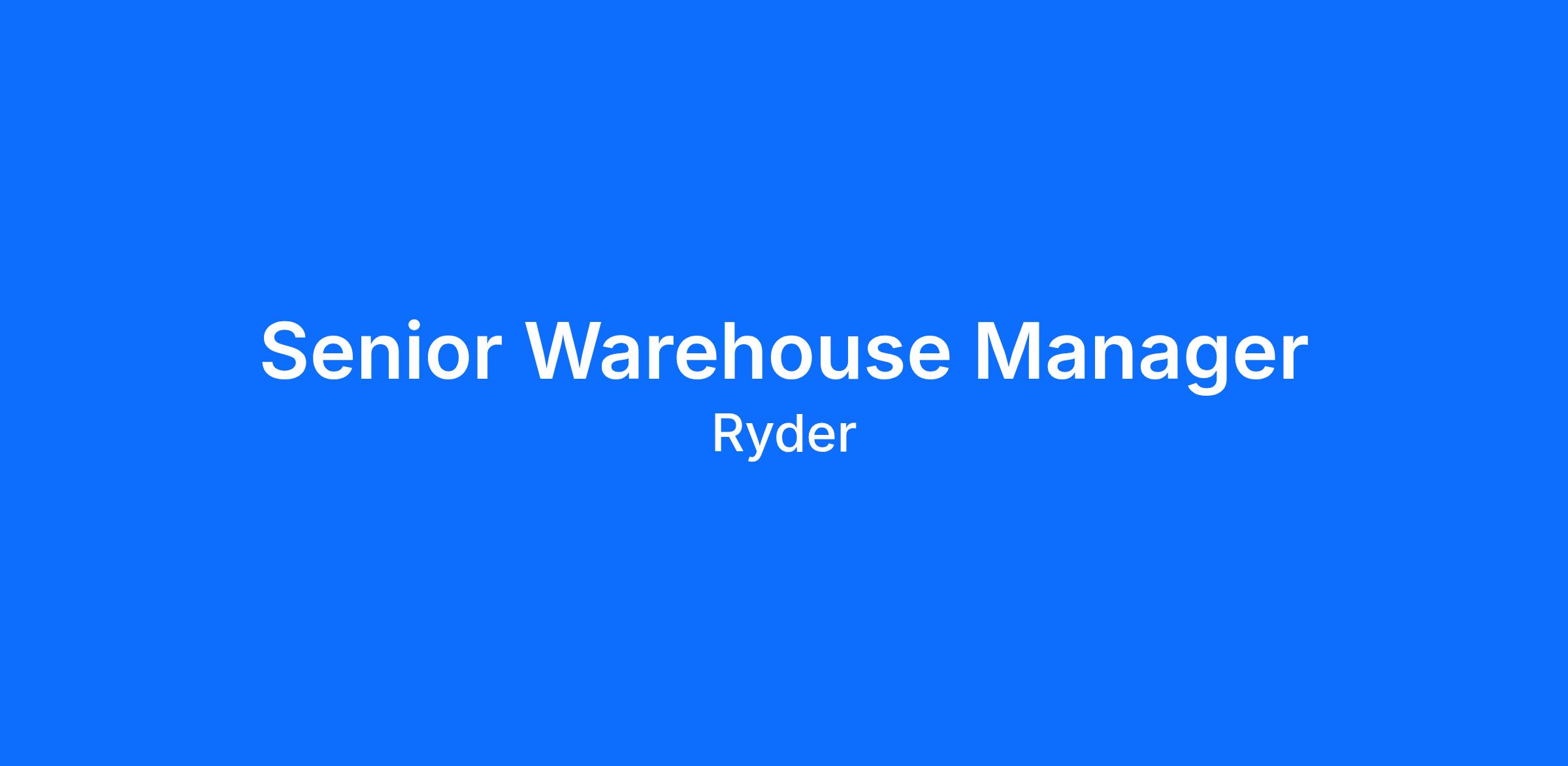 Senior Warehouse Manager