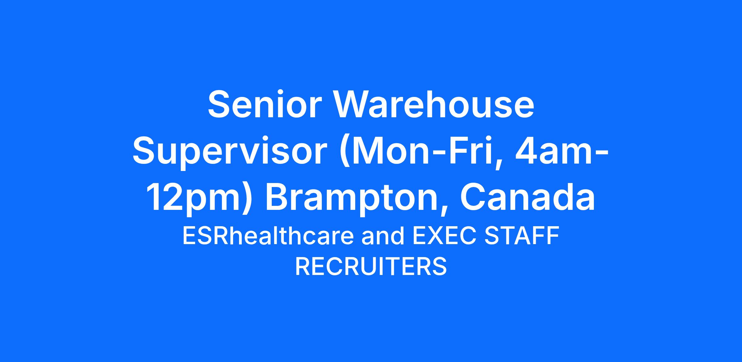 Senior Warehouse Supervisor (Mon-Fri, 4am-12pm)