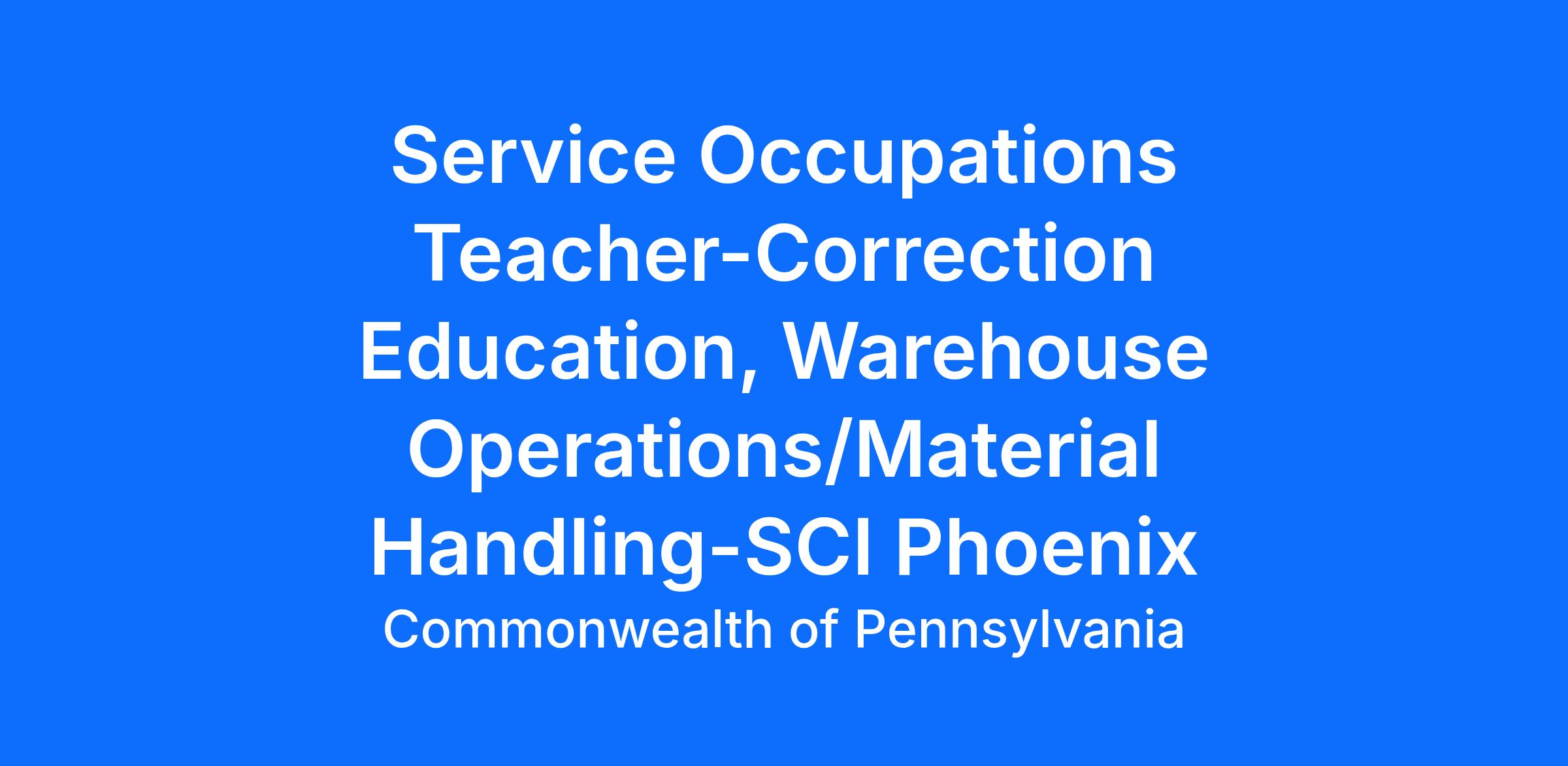 Bring your warehouse operations and material handling knowledge to the Pennsylvania Department of Corrections (DOC)! We are looking for an experienced Service Occupations Teacher to join our staff of vocational teachers. State Correctional Institution (SCI) at Phoenix is one of many facilities in DOC that offer a variety of vocational programs to teach inmates valuable skills to use upon their re-entry into their communities. If you are looking for a new way to apply your expertise in construction and building, apply today!