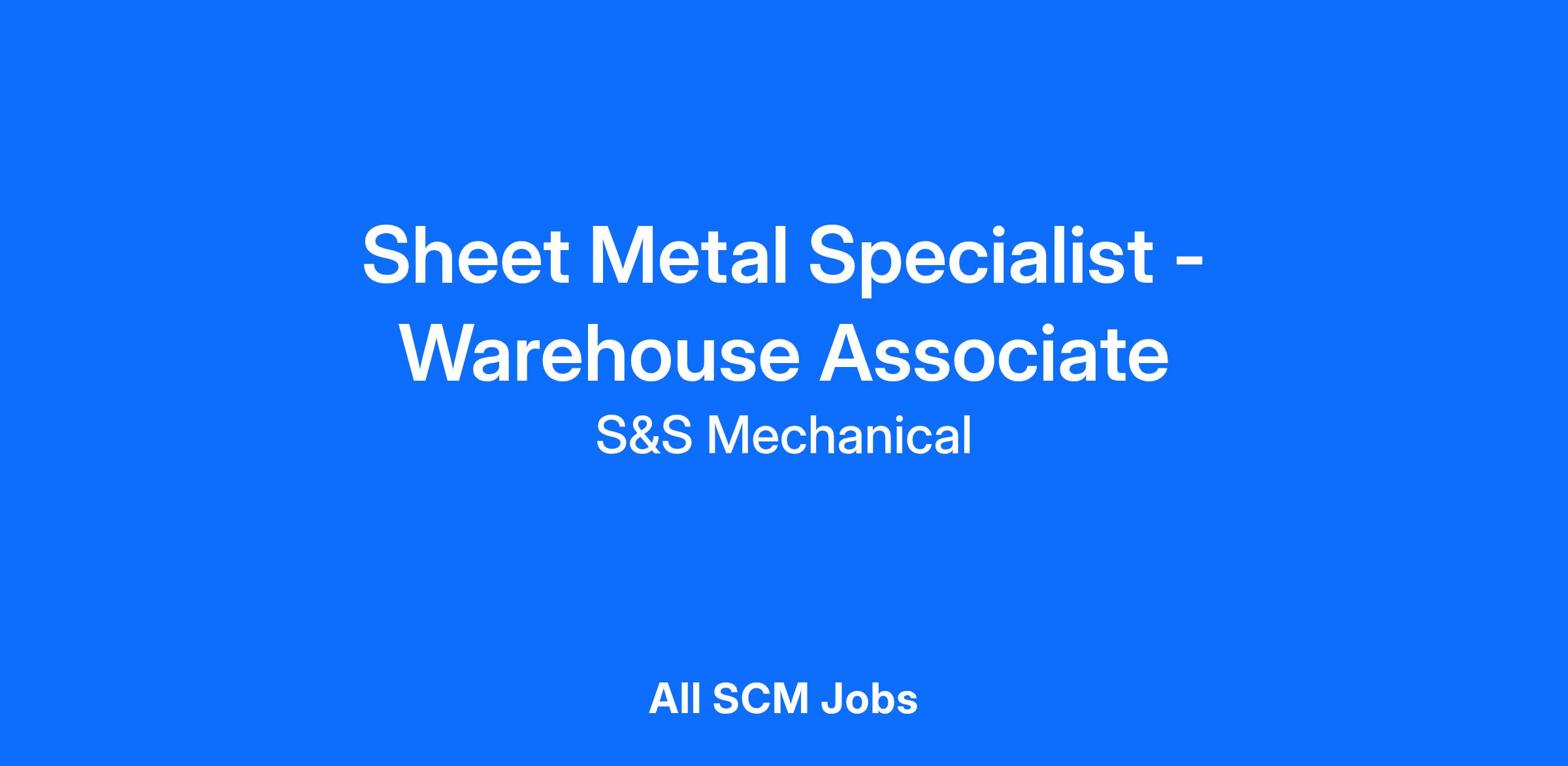 WHAT DO YOU NEED TO BE OUR SHEET METAL SPECIALIST - WAREHOUSE ASSOCIATE?