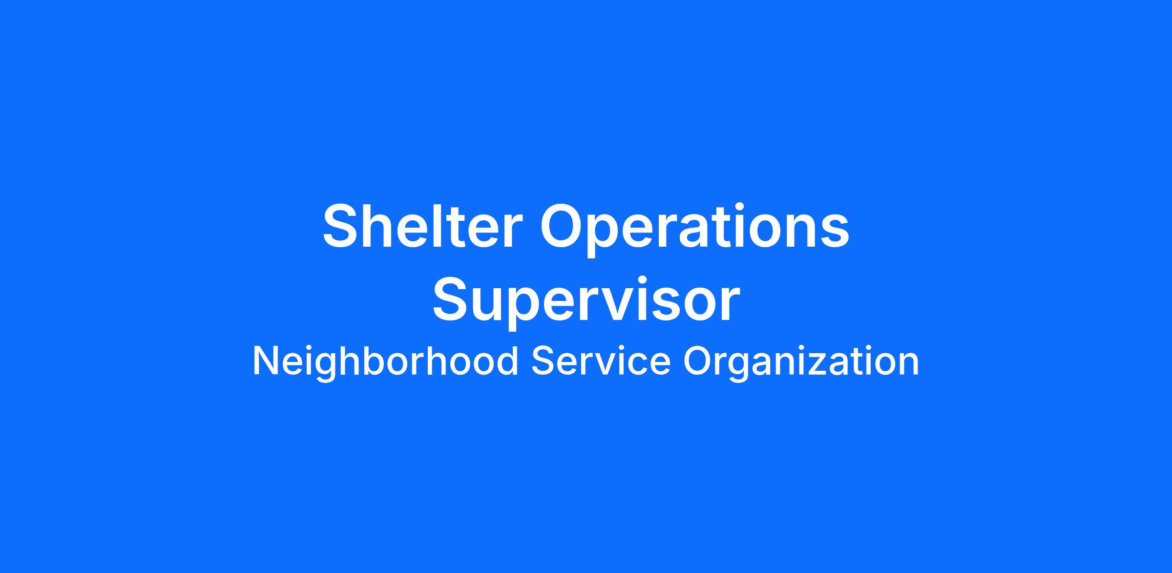Under the guidance of the Program Manager of Shelter Services, the Operations Supervisor will oversee the daily operations of the Emergency Shelter for the Homeless Recovery Service division. The Operations Supervisor provides direct supervision to Emergency Shelter Operations Specialists staff who provide 24-hour essential shelter services. The Operations Supervisor oversees meal planning, coordination of donations and events, inventory and ordering of supplies, crisis intervention and client related incidents, ensures clients are in compliance with shelter expectations and protocols, maintains communication with case management and healthcare services to ensure clients are linked to appropriate or requested services, manages daily bed inventory and utilization, and ensures that staff are maintaining the general cleanliness and safety of the building. The Operations Supervisor will perform related duties as assigned by supervisor.