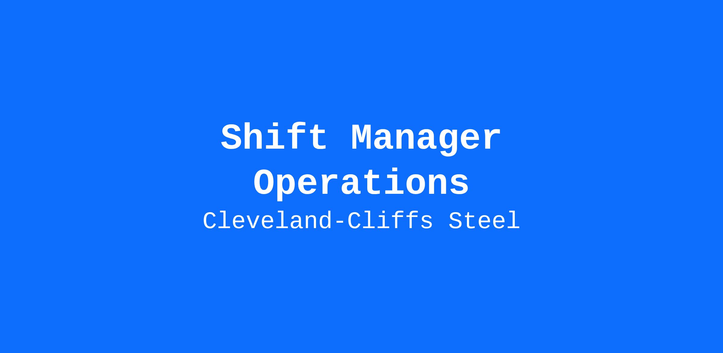 Cleveland-Cliffs Steel has an immediate opening for a Shift Manager Operations at our Middletown location. The Shift Manager coordinates the Safety and Quality activities and oversees production of a production line in accordance with safety, material quality and production standards. We have multiple openings across the plant.