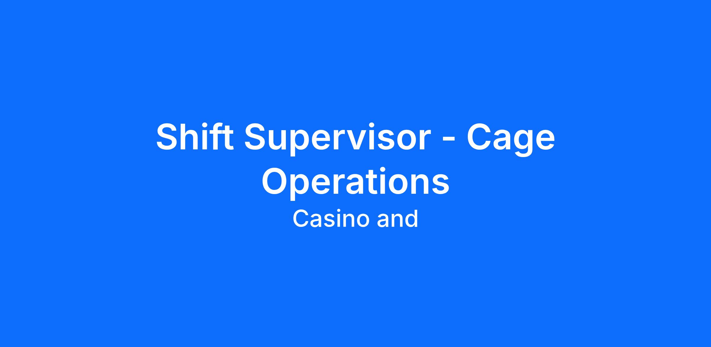 Supervises and coordinates activities of workers engaged in the Casino Cage Operations.