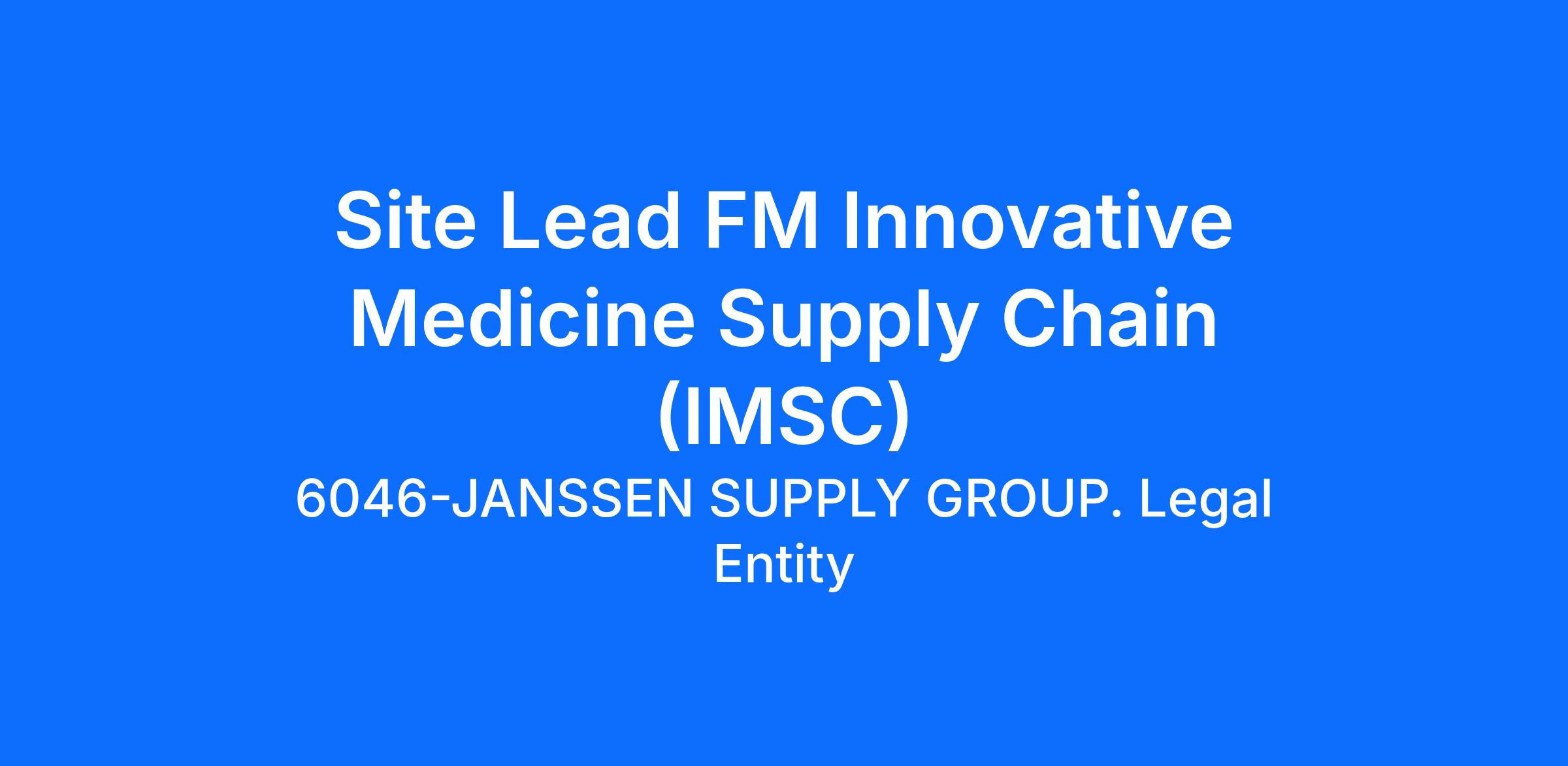 We are searching for the best talent for Site Lead FM Innovative Medicine Supply Chain (IMSC) to be located at Spring House, PA.