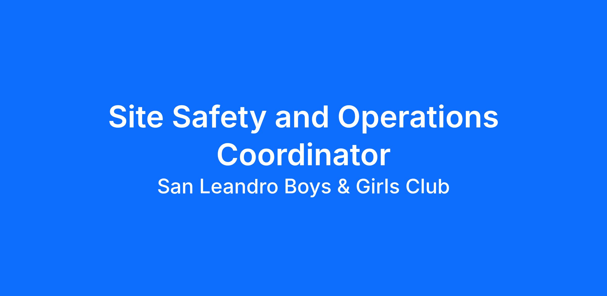 The Site Safety and Operation Coordinator will work primarily in a school-based site at the Boys & Girls Club of San Leandro. This role may as needed require flexibility to accommodate organizational events or deadlines. Key aspects of the work environment include: