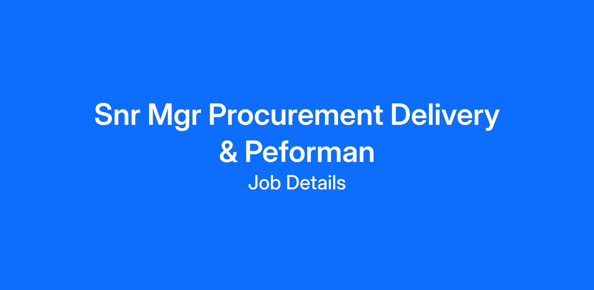 For more information read the full Role Description: Senior Manager Procurement Delivery and Performance