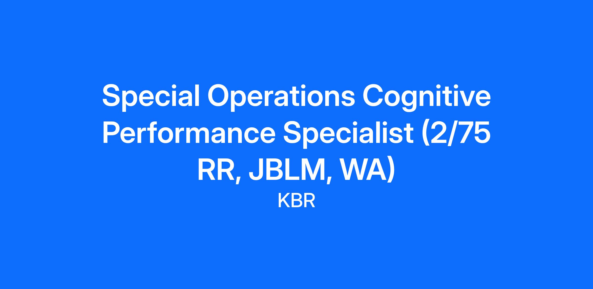 Special Operations Cognitive Performance Specialist (2/75 RR, JBLM, WA)THIS POSITION OFFERS RELOCATION.