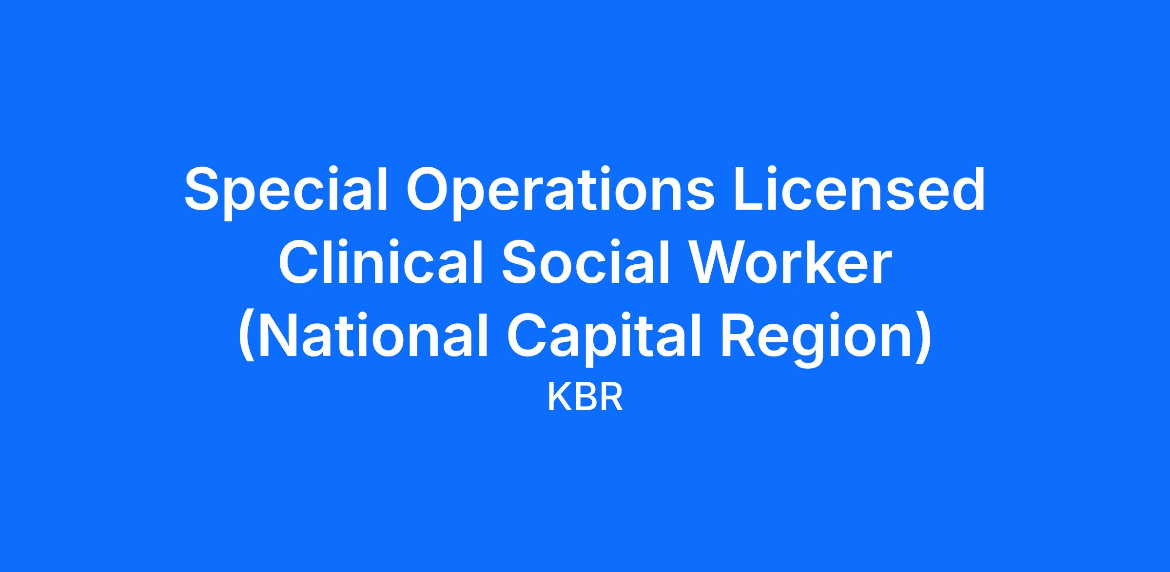 KBR maintains a highly qualified workforce to help care for service people and astronauts. We are looking for a Special Operations Licensed Clinical Social Worker to join the team who is responsible for integrating the physical, mental and psychological wellness of our service members and their families.